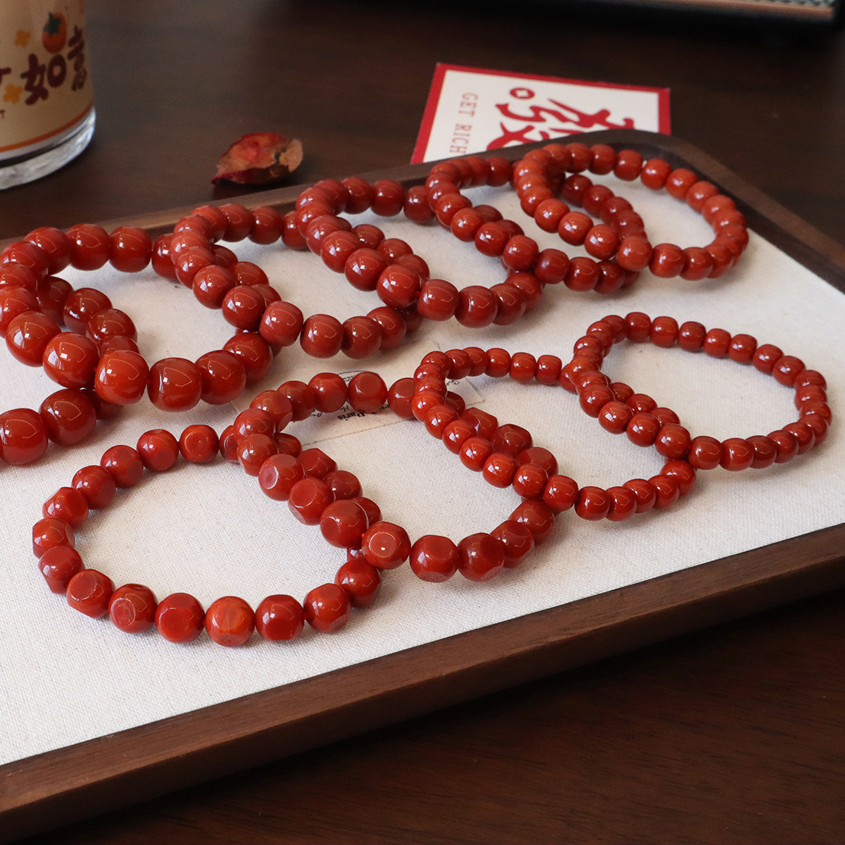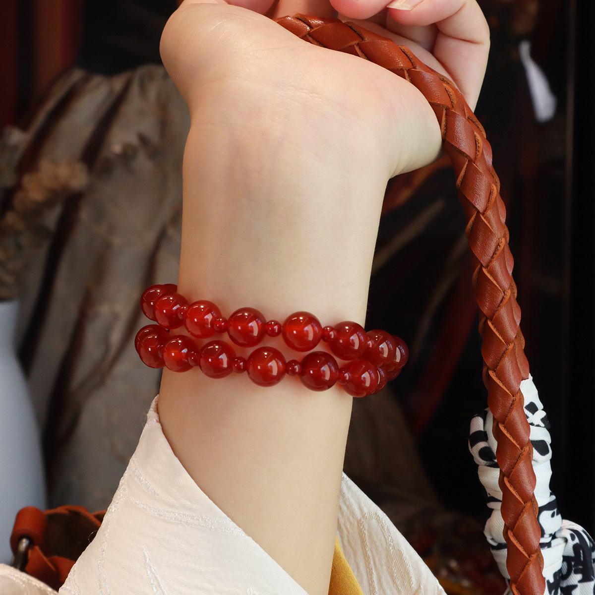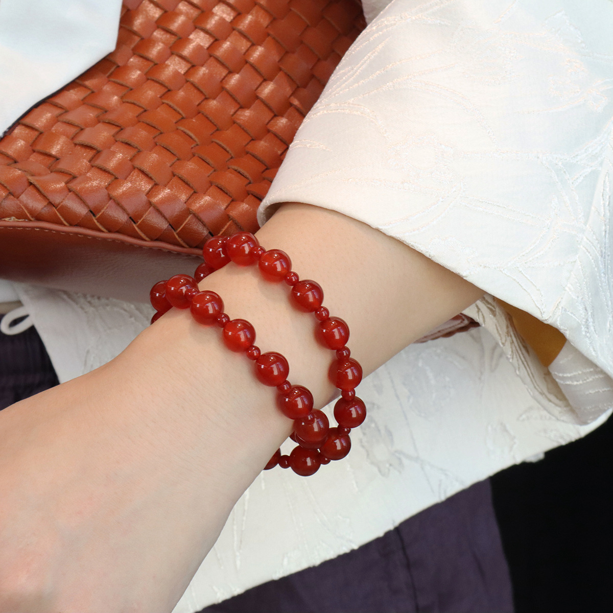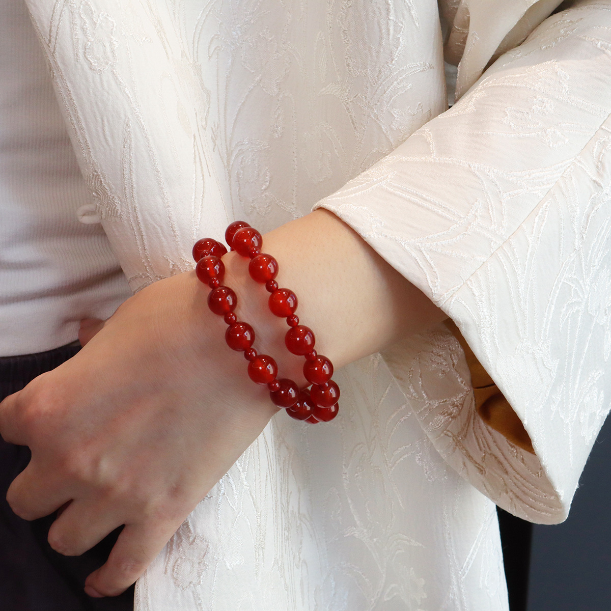 晶德珠宝 许我耀眼赵露思同款7A级红玛瑙双圈手链复古本命年手串
