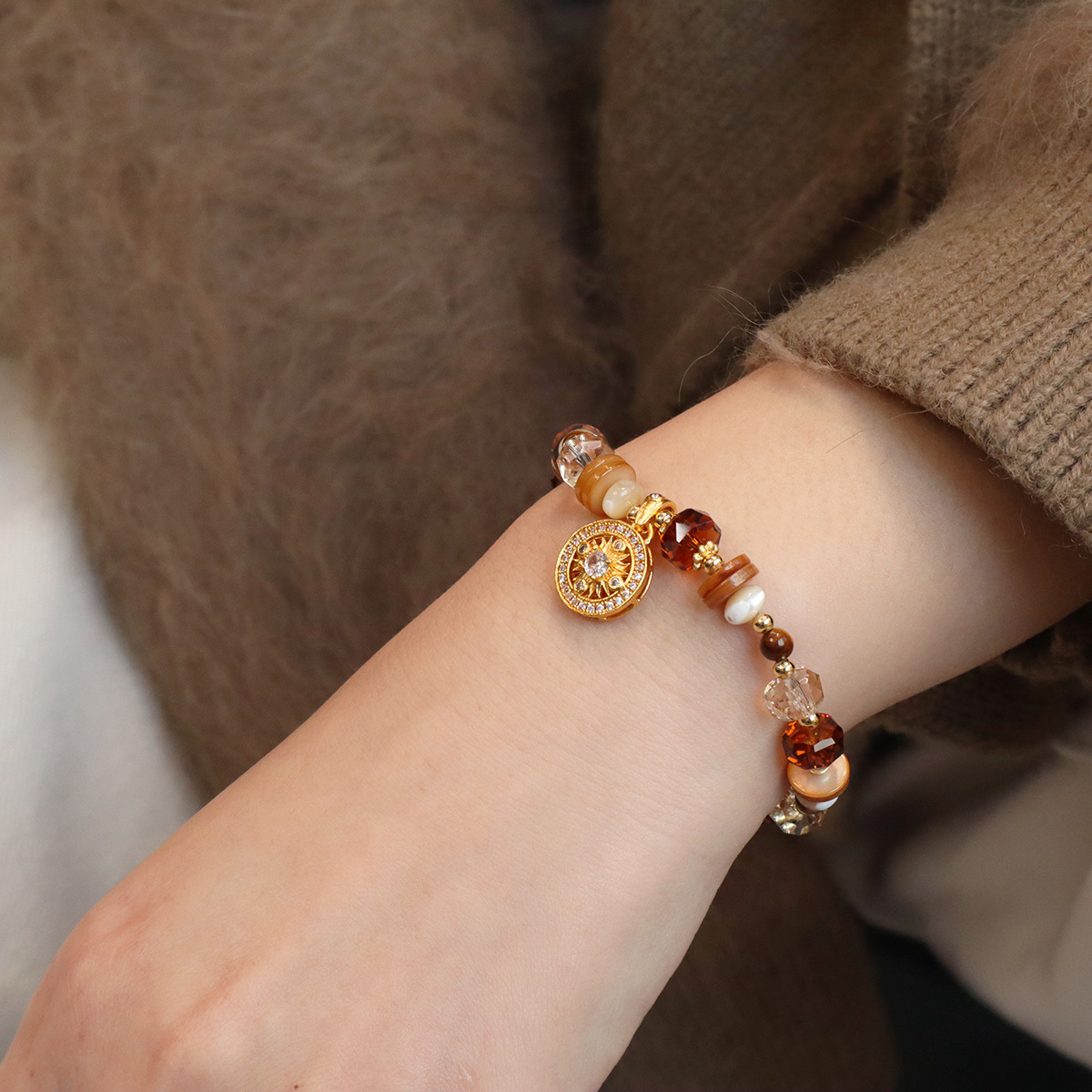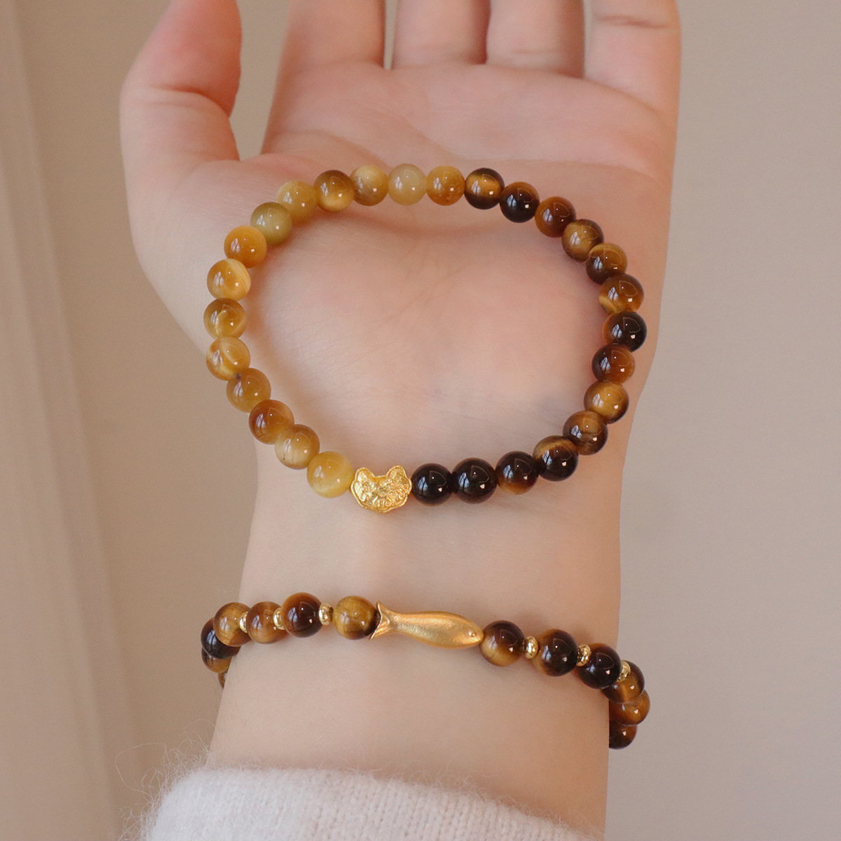 轻奢高级感沙金手串女天然虎眼石手链流光溢彩焦糖秋冬水晶手饰品