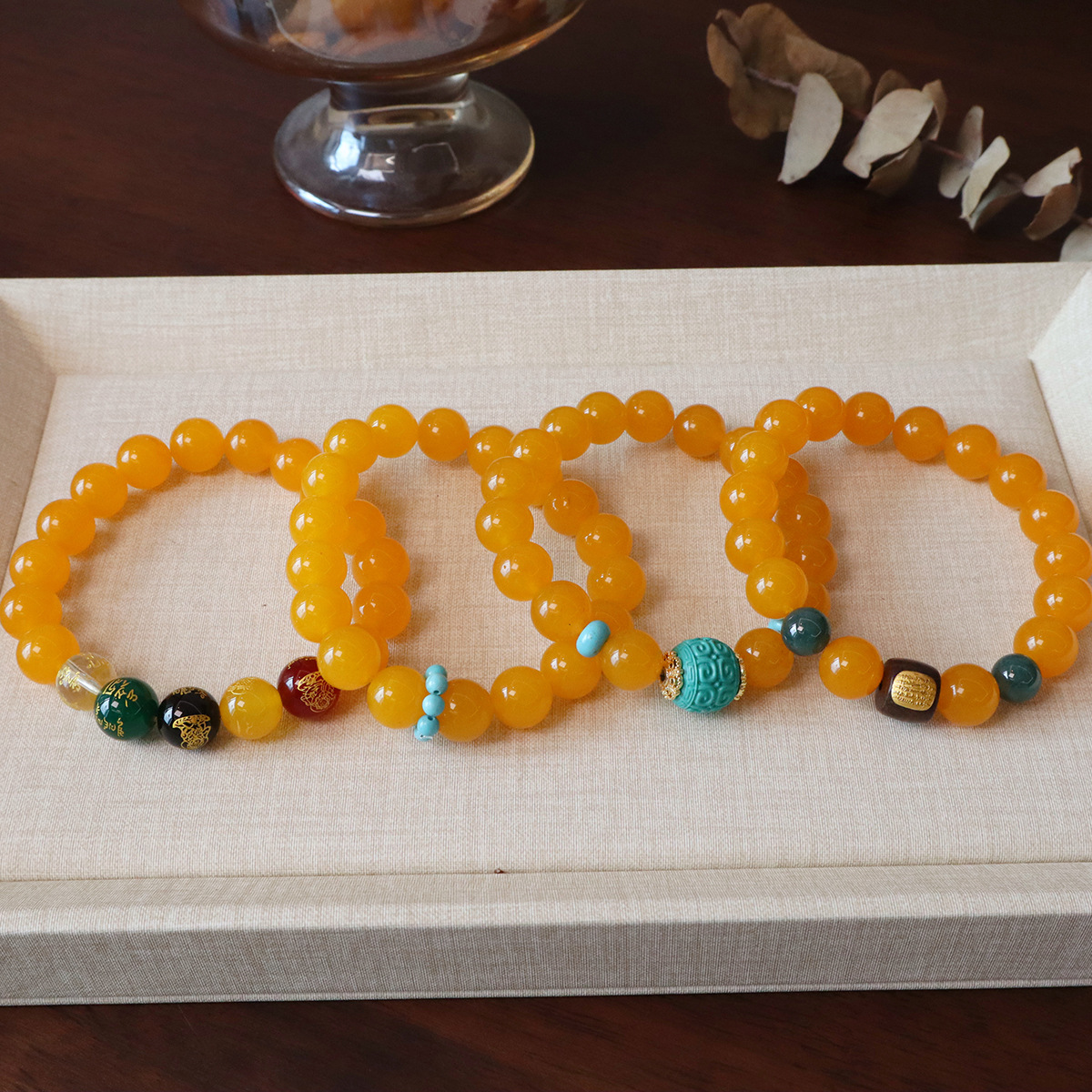 10MM天然黄玛瑙手串五路财神磷镁矿隔珠民族风文玩佛珠手链女饰品
