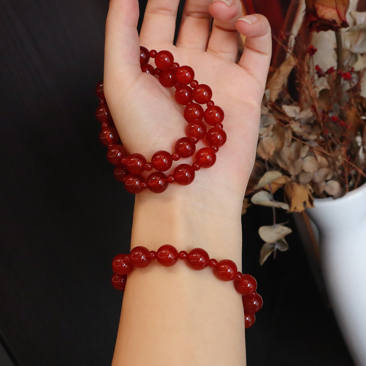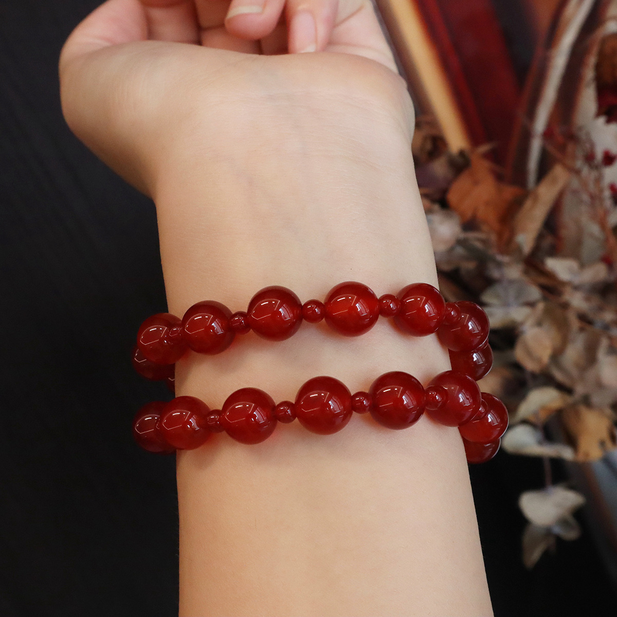 颜色 10MM单圈红玛瑙露丝同款手串,10MM双圈红玛瑙露丝同款手串