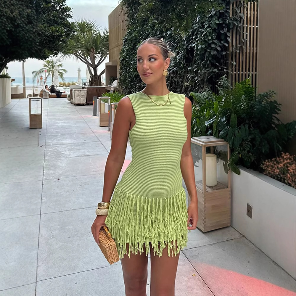ファッショナブルでハイエンドのソリッドカラーニットタッセルスリムセクシーベストドレス2025ヨーロッパとアメリカの国境を越えた外国貿易卸売