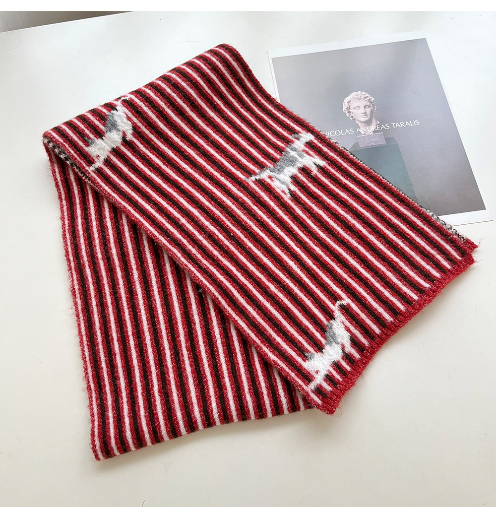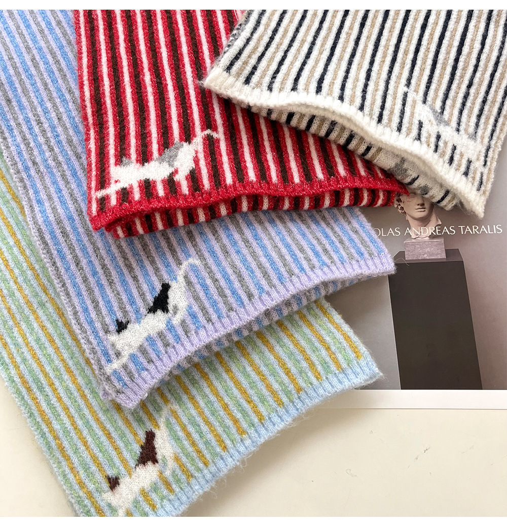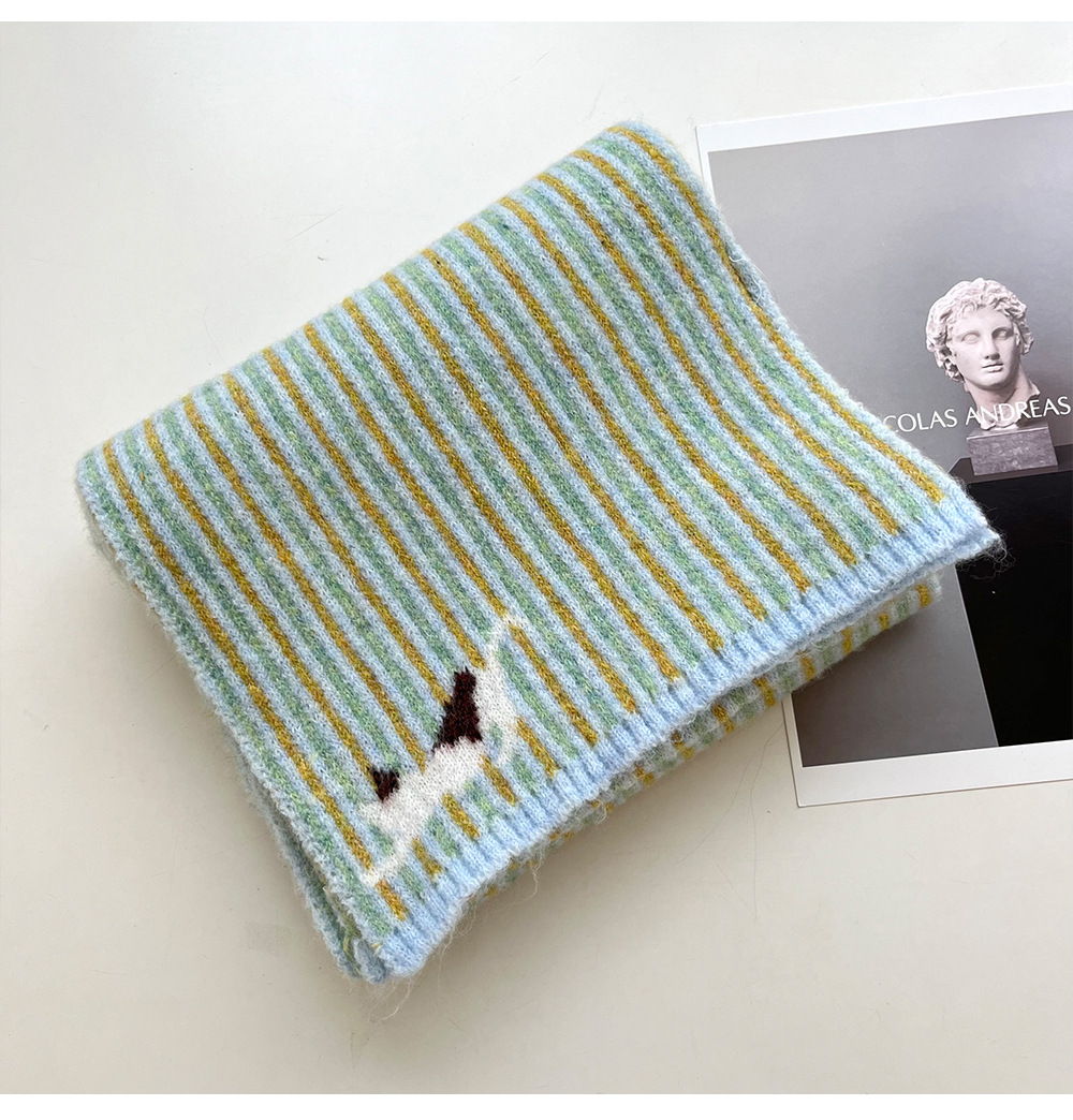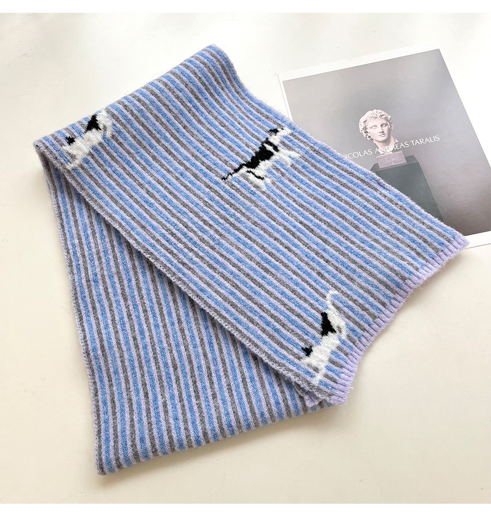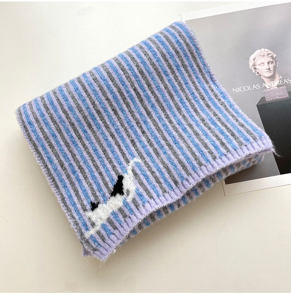 出口日韩2025新款可爱猫咪条纹撞色针织围巾女冬季学生保暖百搭甜