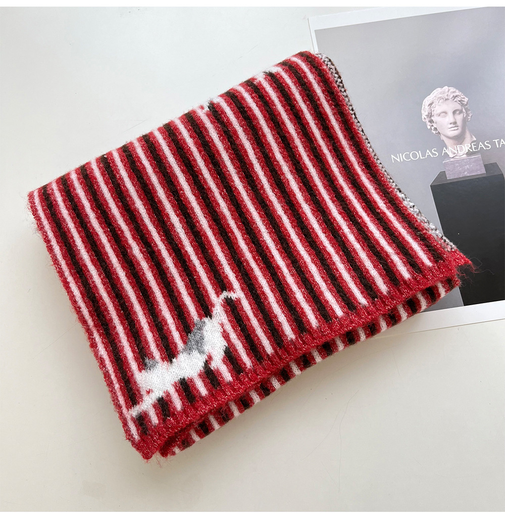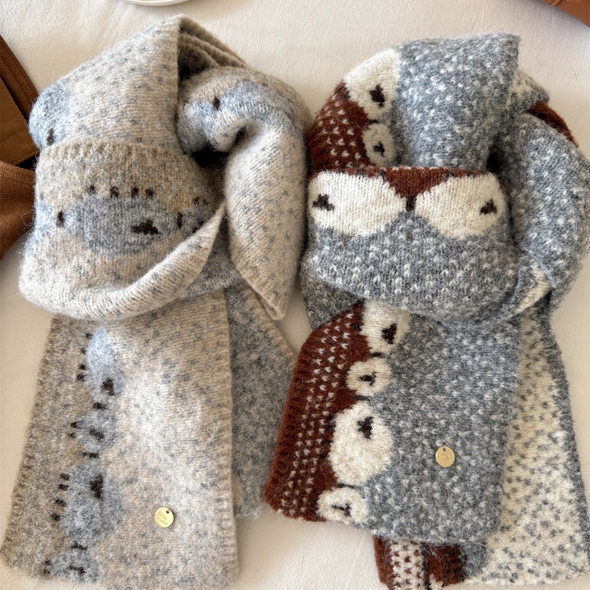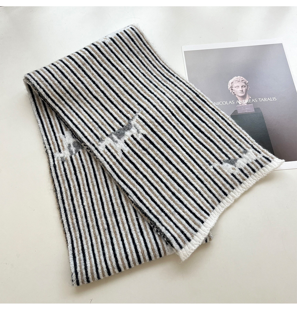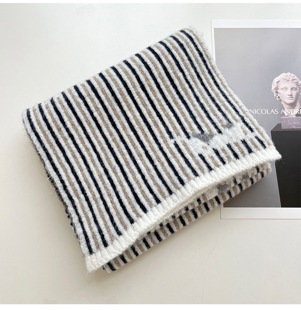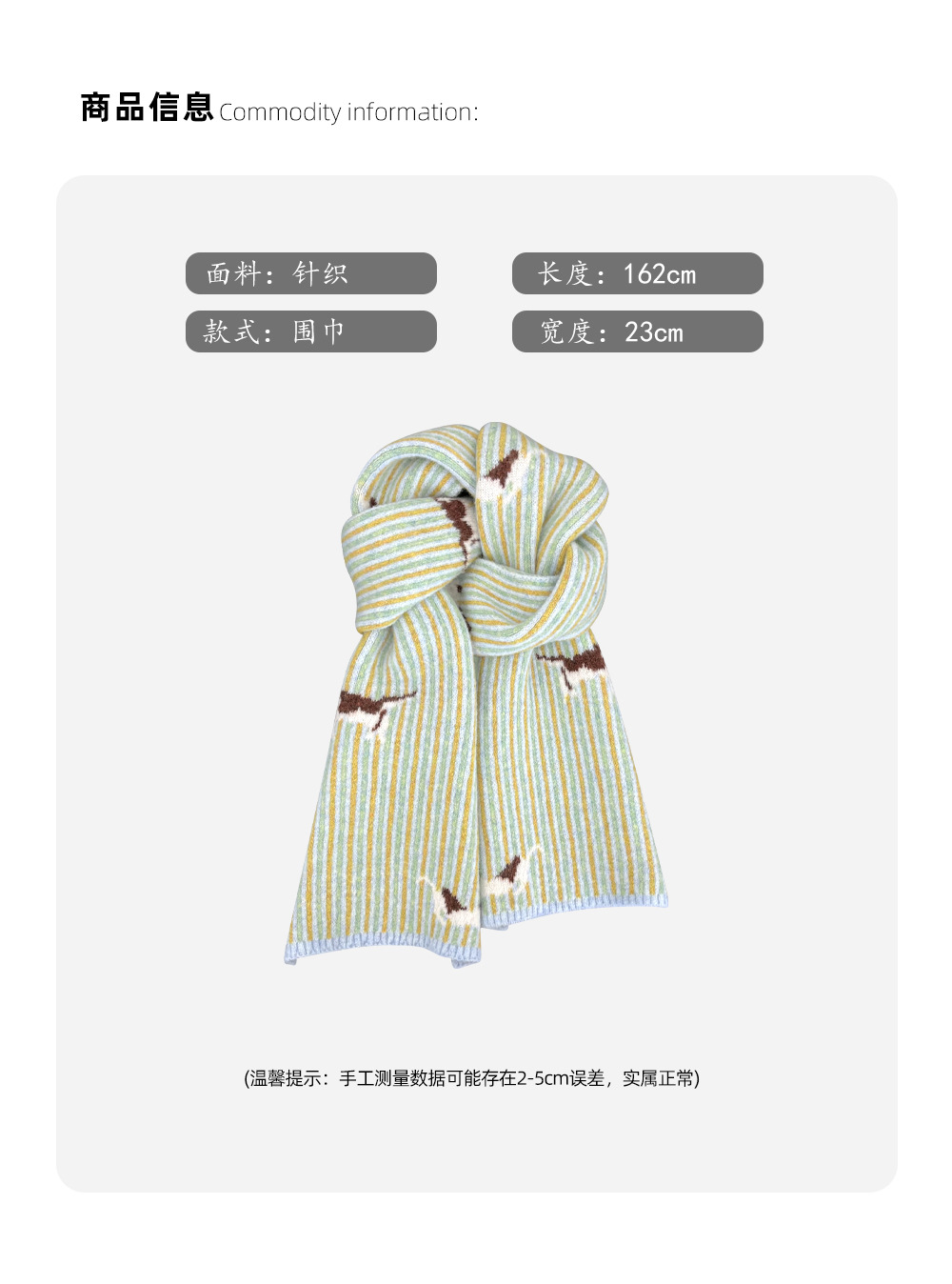 出口日韩2025新款可爱猫咪条纹撞色针织围巾女冬季学生保暖百搭甜