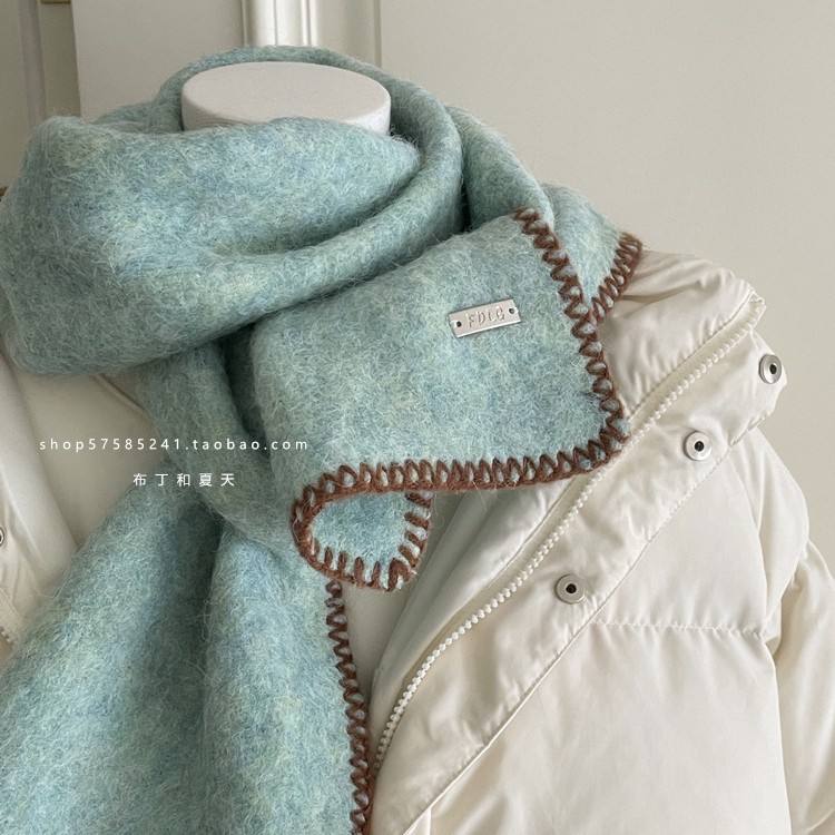 高品质2025新款含羊毛针织锁边围巾女冬季新款韩系氛围感保暖围脖