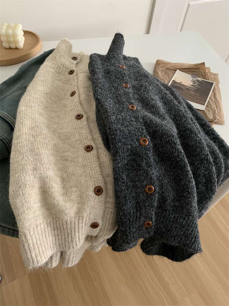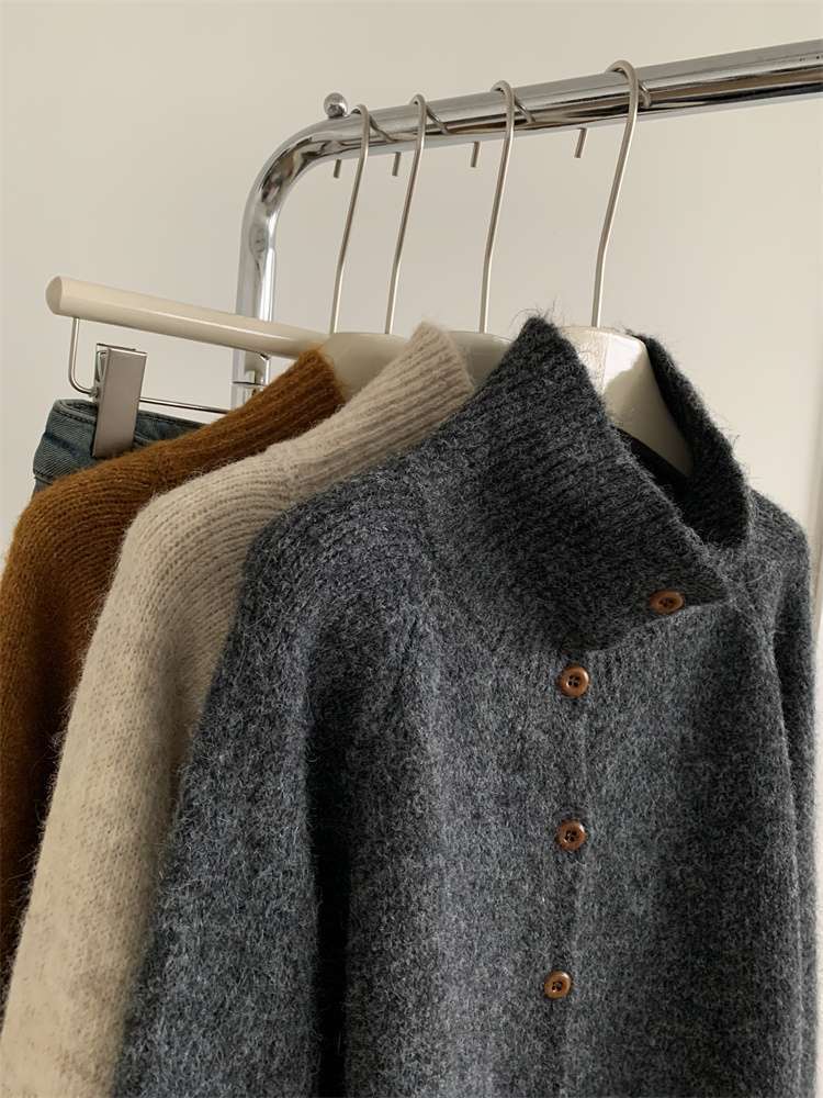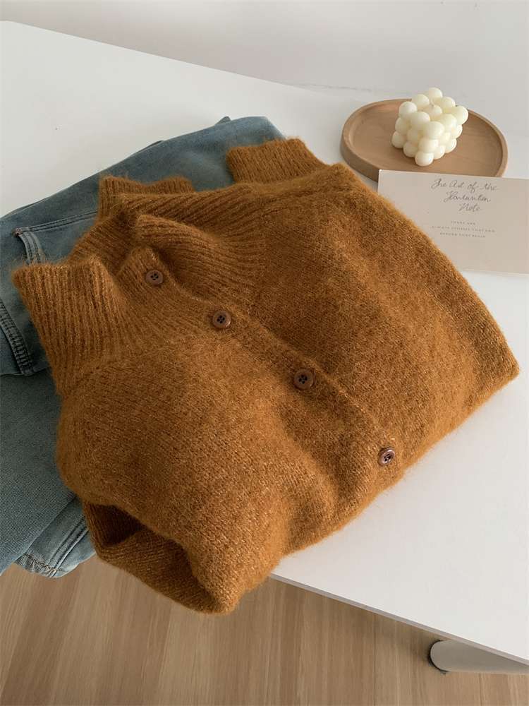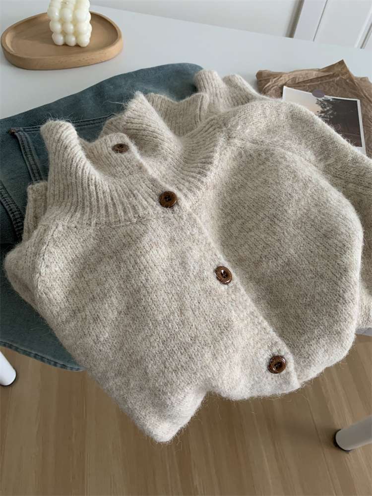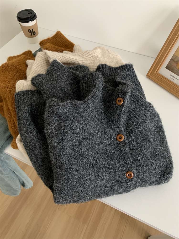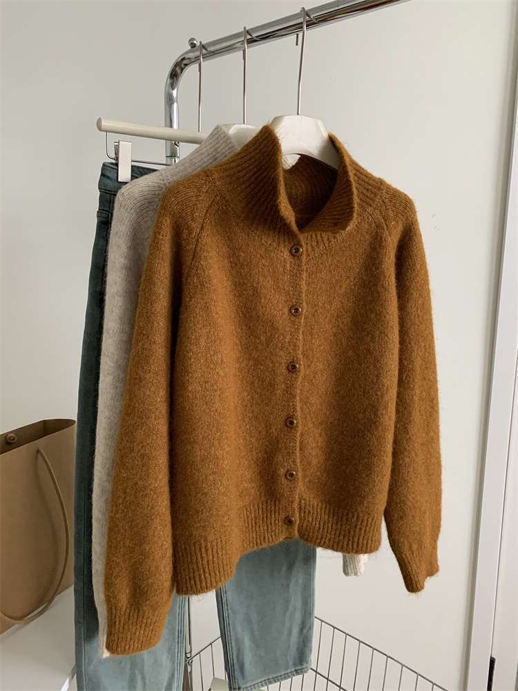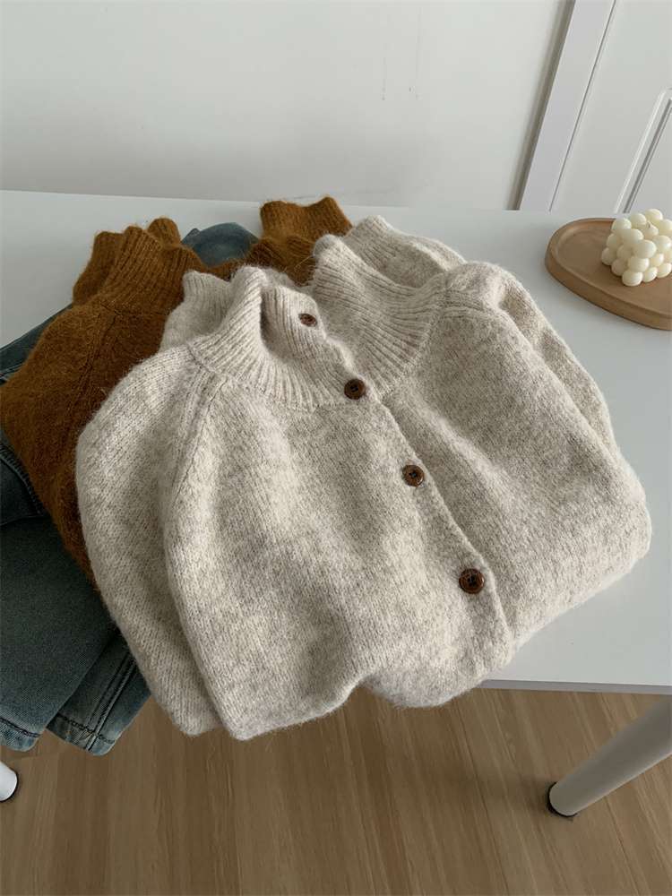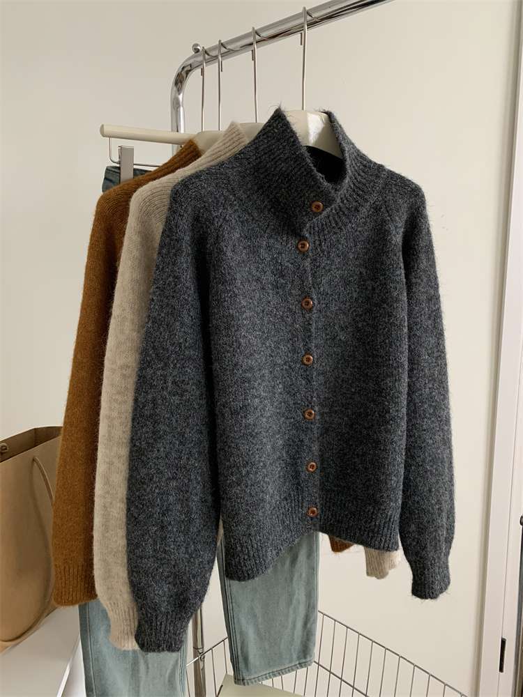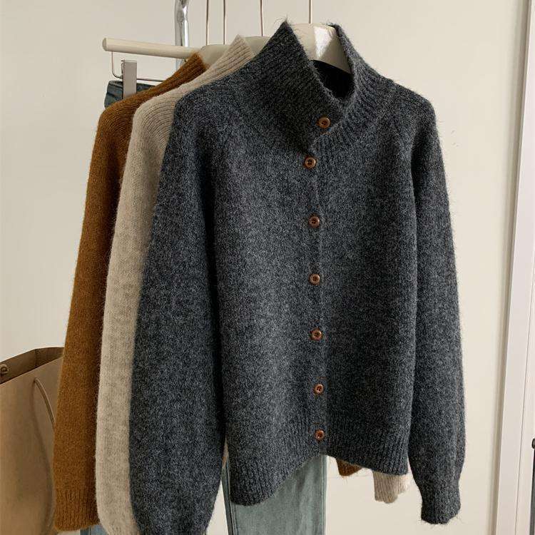 2025年新品立领针织开衫外套上衣女秋冬软糯针织开衫高领慵懒外穿