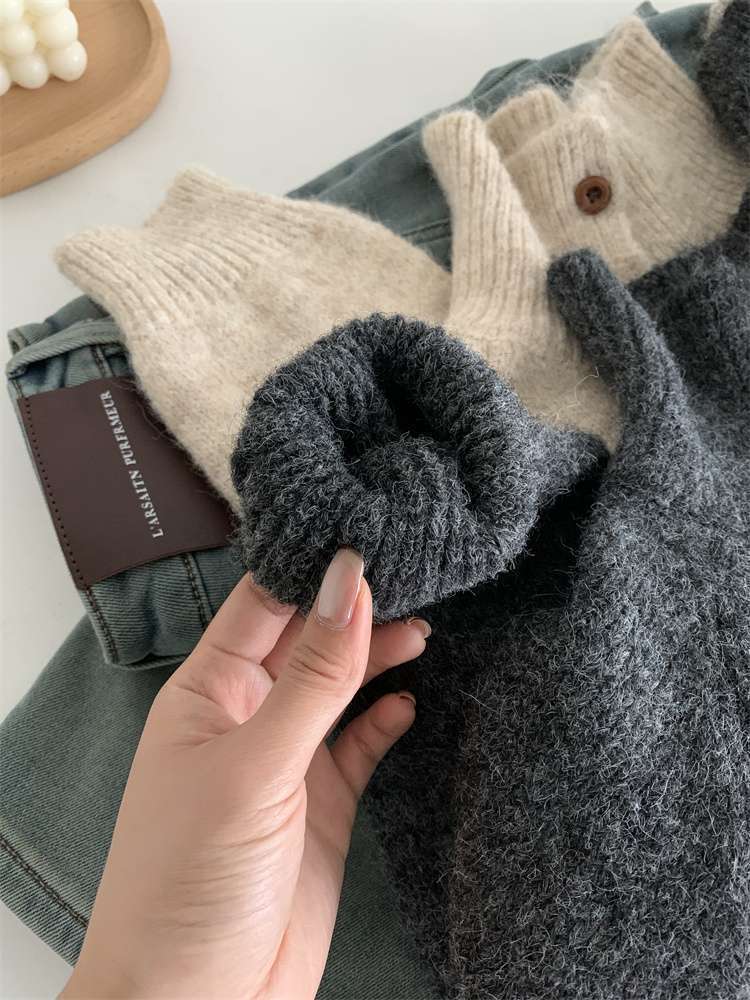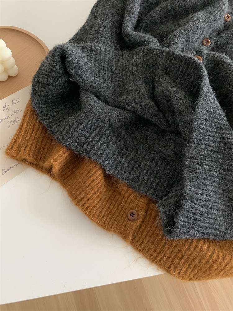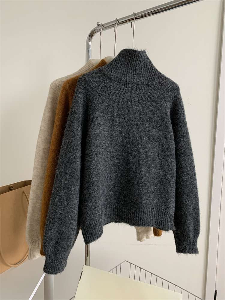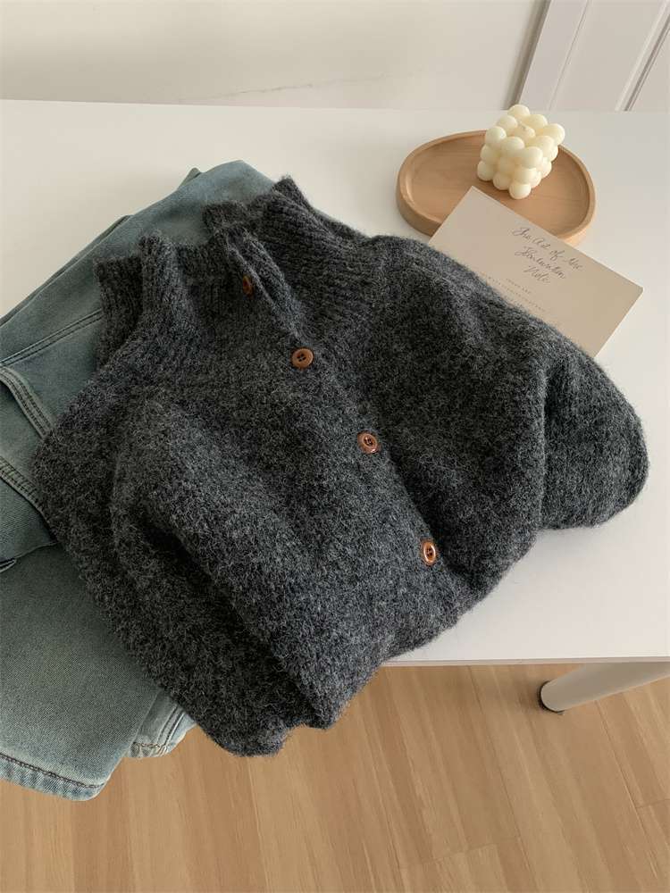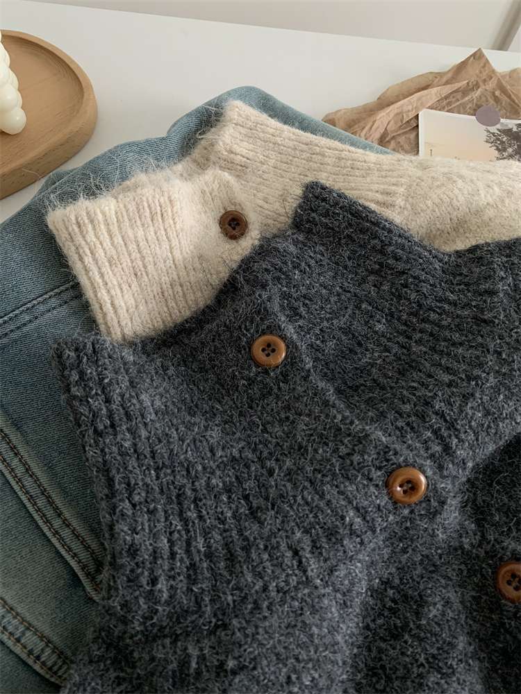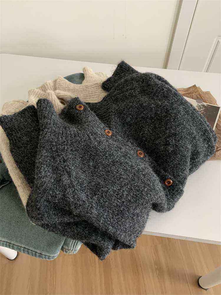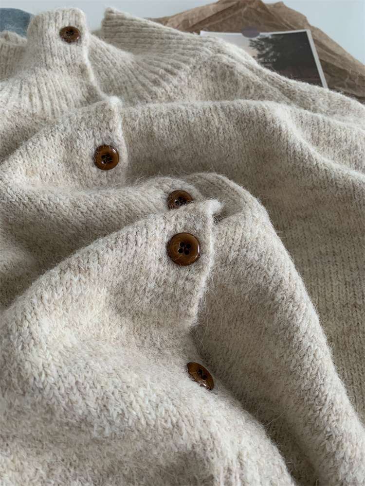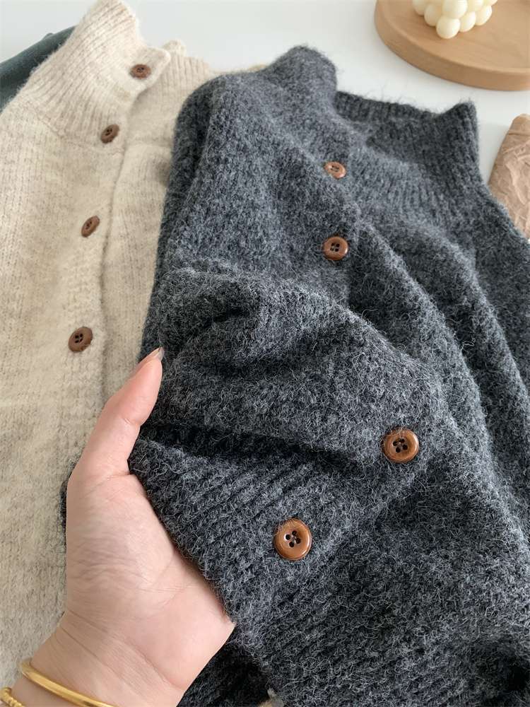 2025年新品立领针织开衫外套上衣女秋冬软糯针织开衫高领慵懒外穿