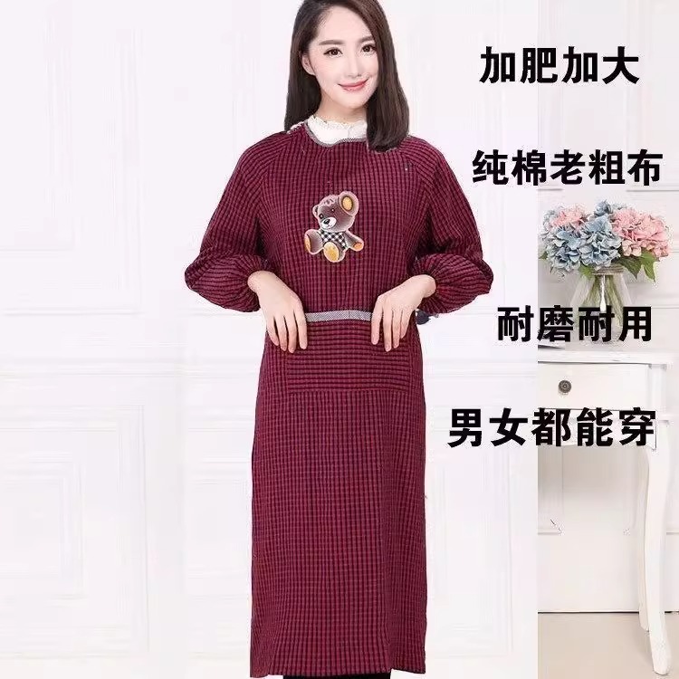 纯棉老粗布围裙长袖成人罩衣家用围裙做饭秋冬加厚工作罩衣工作服