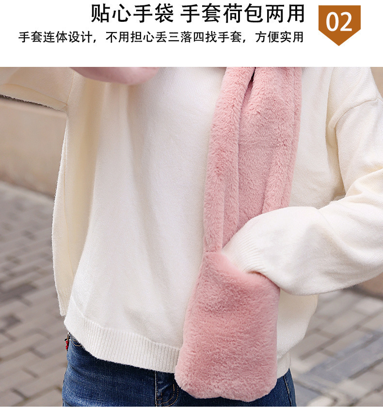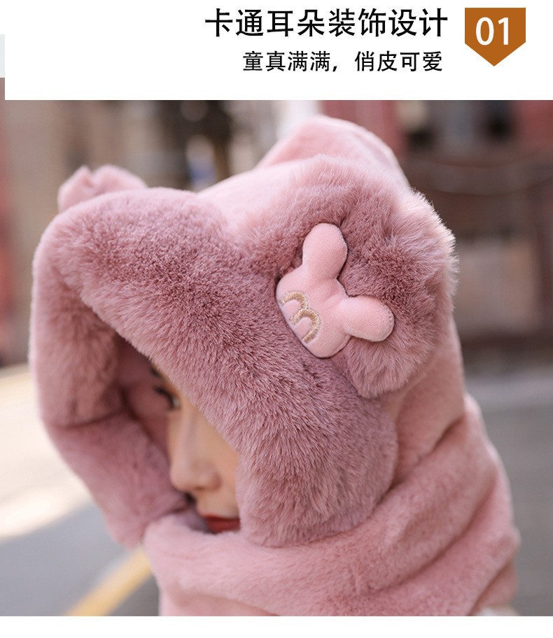 新款兔子耳朵女秋冬季围巾帽子手套一体三件套加绒加厚保暖毛绒帽
