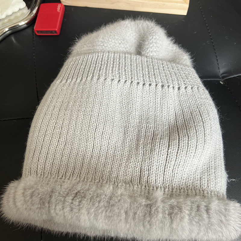 新款皮草帽子水貂毛堆堆帽冬季显脸小保暖女帽加绒百搭兔毛针织帽