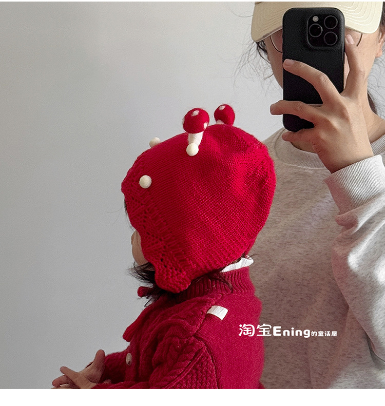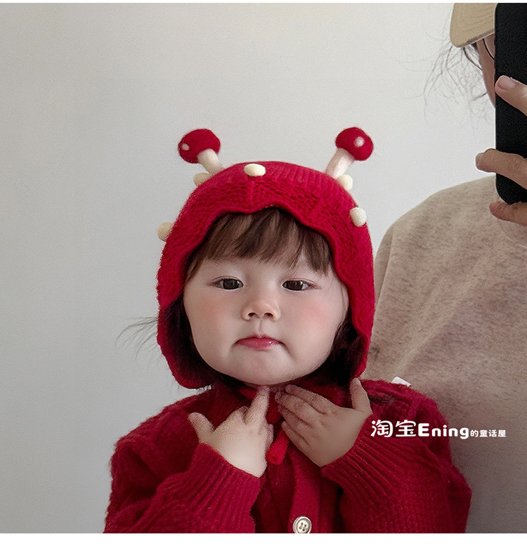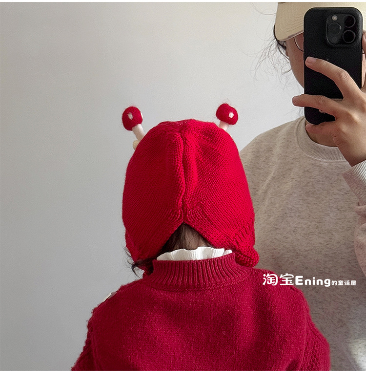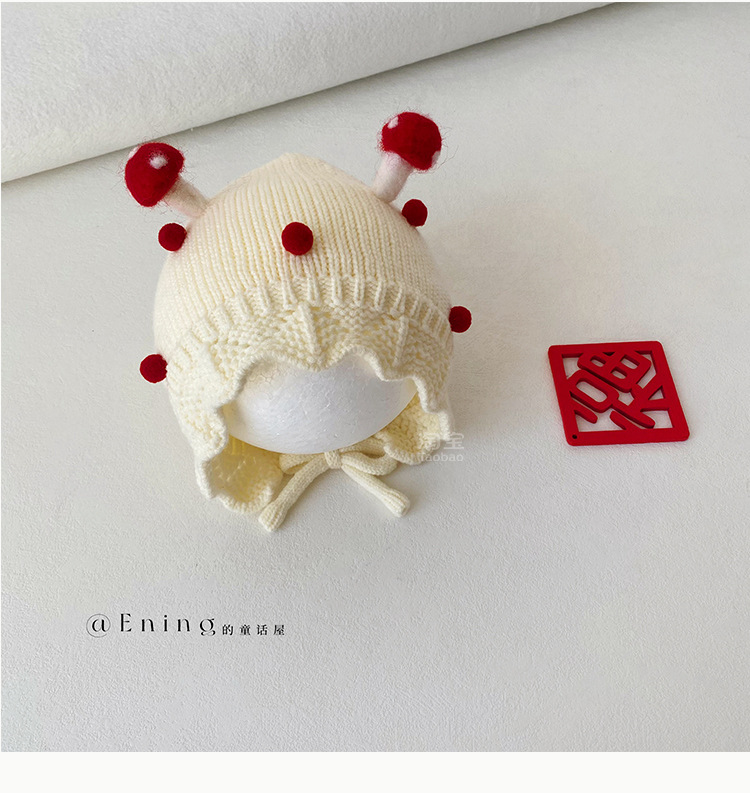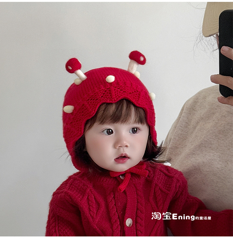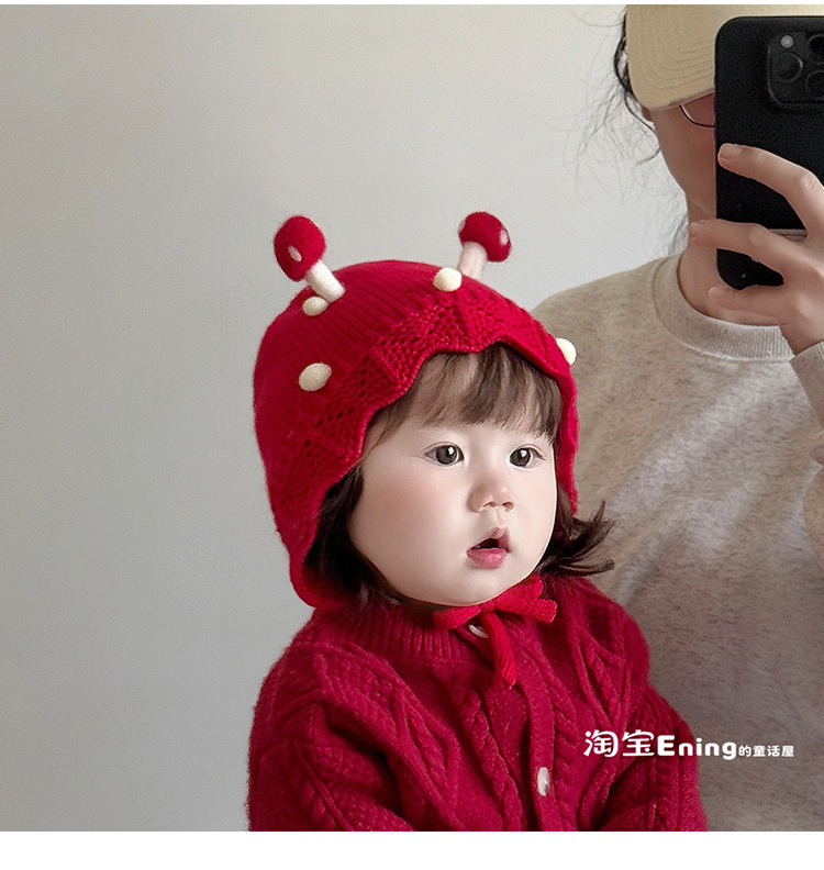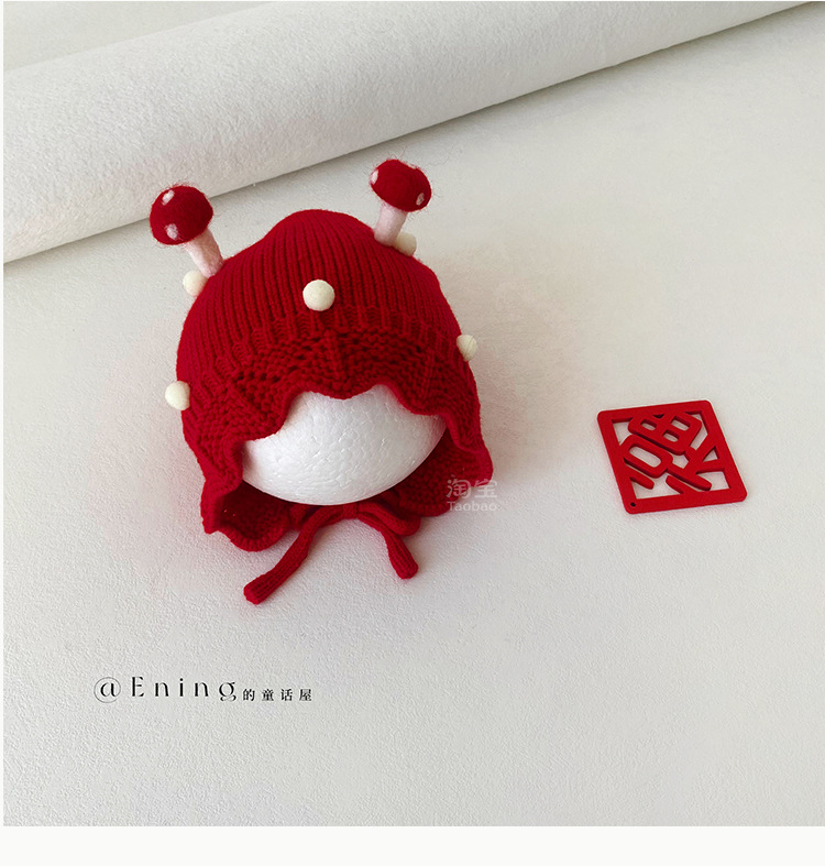 公主红色婴幼儿童毛线帽子秋冬季小月龄女宝宝护耳可爱超萌过新年