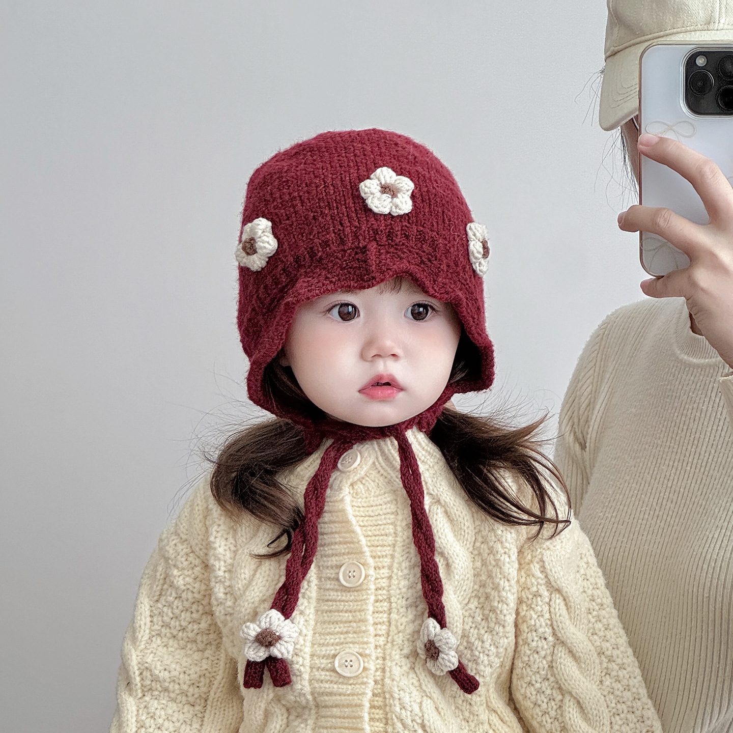 赤ちゃんの毛糸帽が可愛いです。