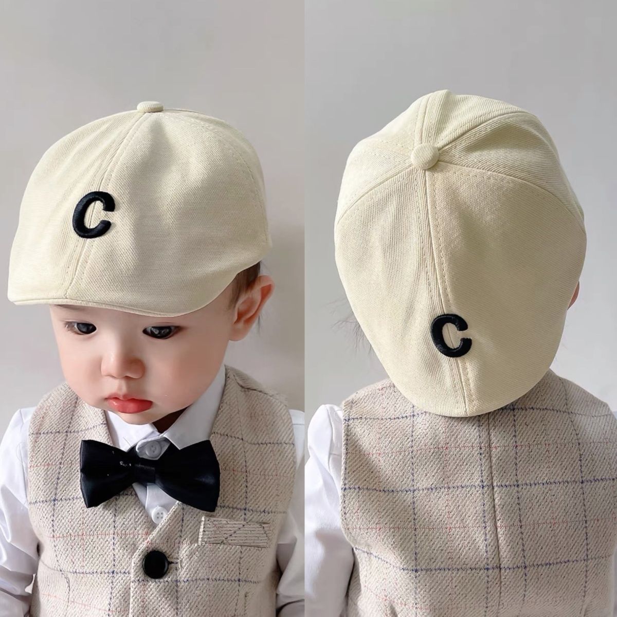 儿童贝雷帽ins韩国洋气西装字母刺绣前进帽男女孩宝宝春秋帽子潮