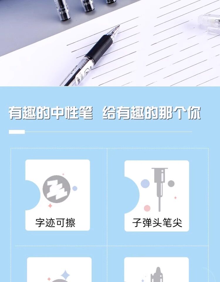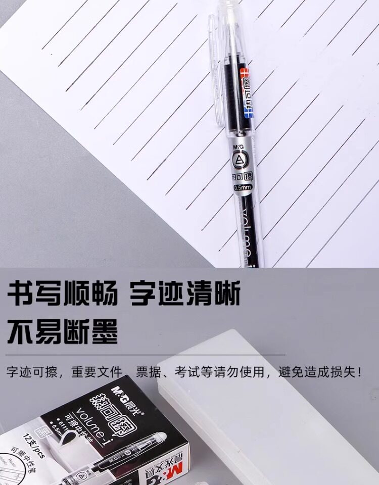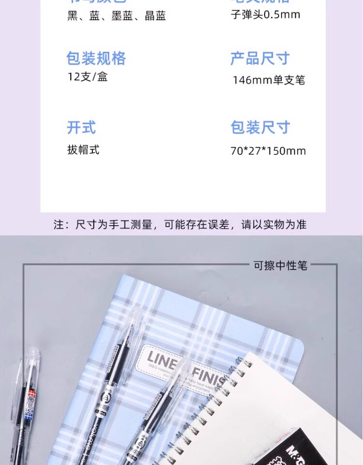 笔芯颜色 晶蓝色可擦笔/6支,墨蓝色可擦笔/6支,黑色色可擦笔/6支,蓝色色可擦笔/6支,红色色可擦笔/6支