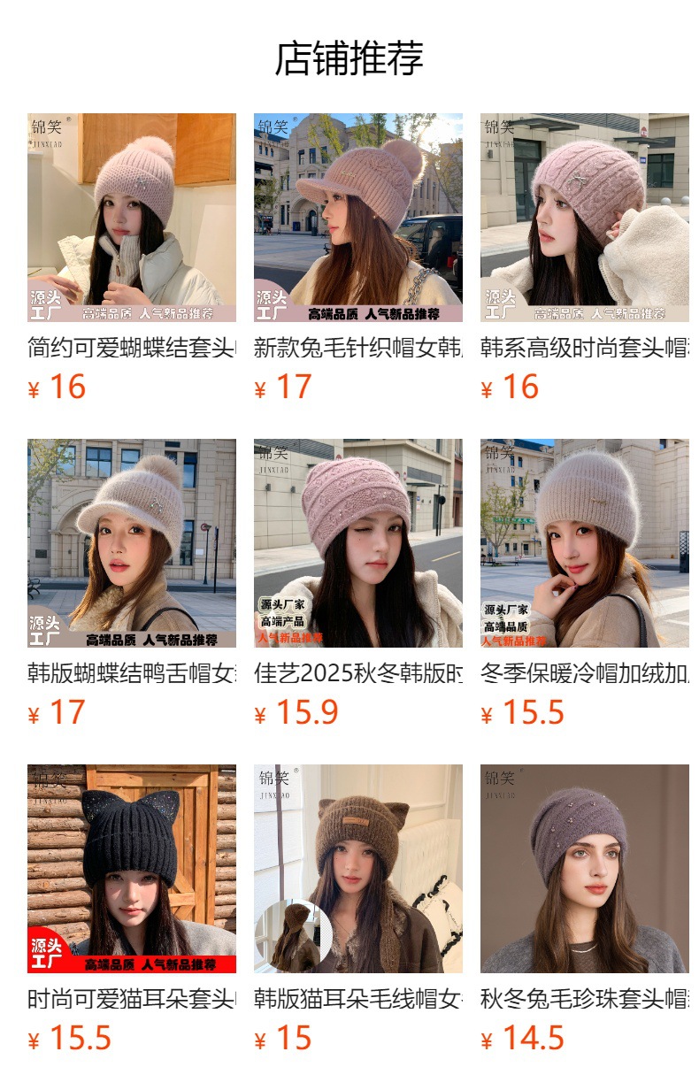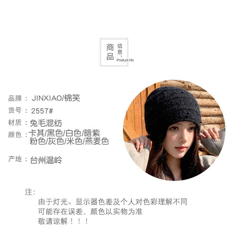 兔毛针织帽女秋冬新款毛线帽佳艺加绒保暖韩版护耳帽堆堆帽百搭潮
