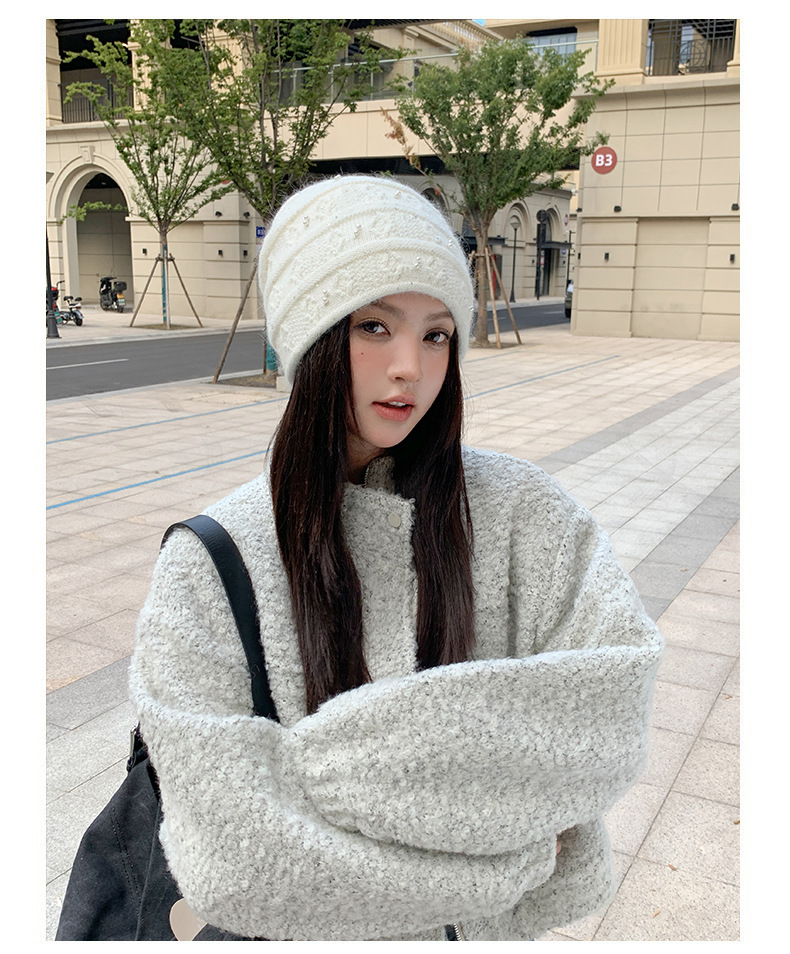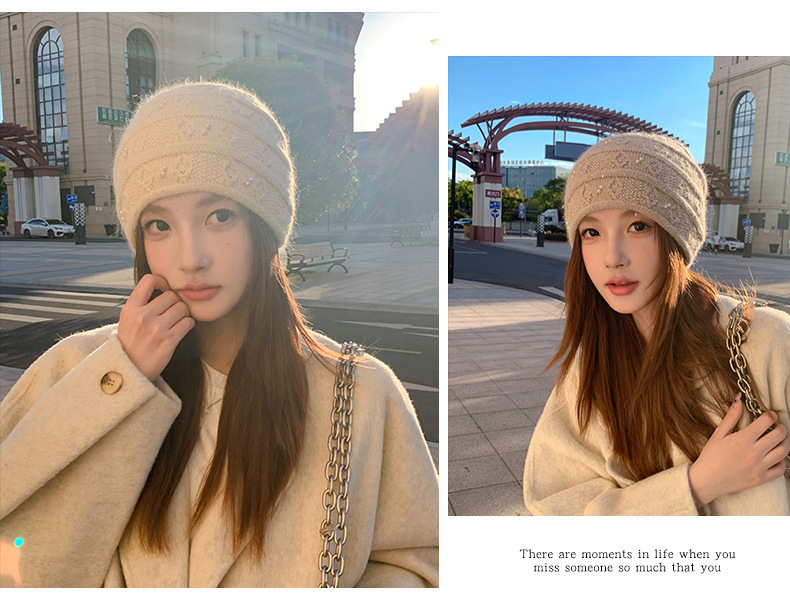 佳艺2025秋冬韩版时尚珍珠套头帽跨境电商包头帽保暖百搭显脸小潮