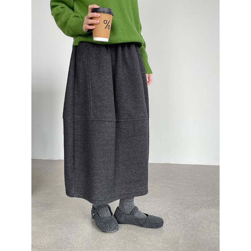 滔川 韩系羊毛加厚绒感花苞半身裙女毛呢松紧显瘦A字裙26621