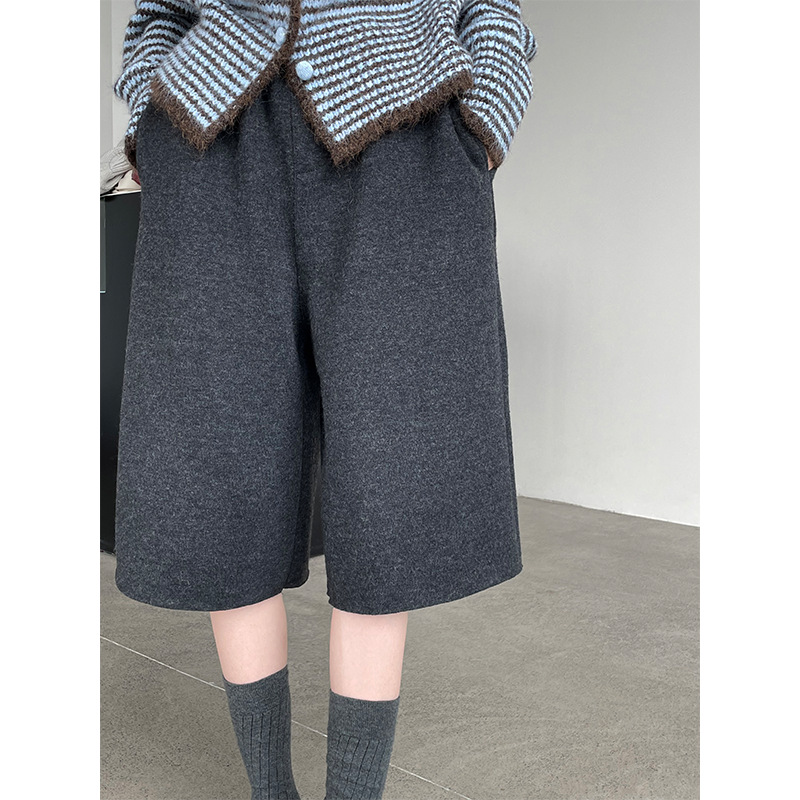 滔川 韩版简约百搭羊毛五分裤女25新款松紧宽松阔腿中裤靴裤2827