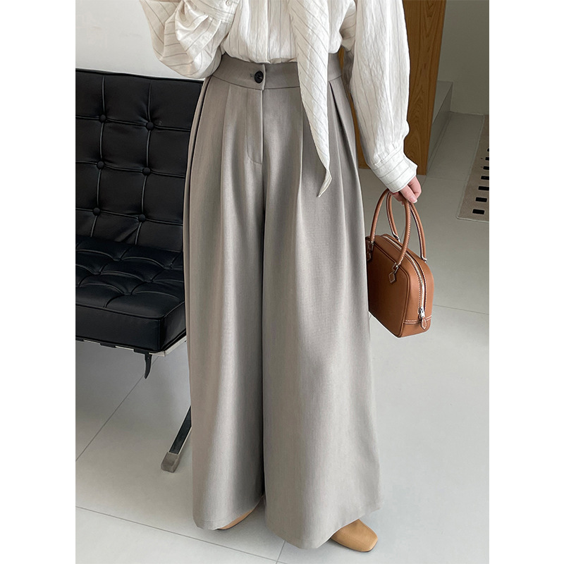滔川 韩系垂感阔腿西装裤女秋冬新款百搭毛呢弯刀裤长裤2820