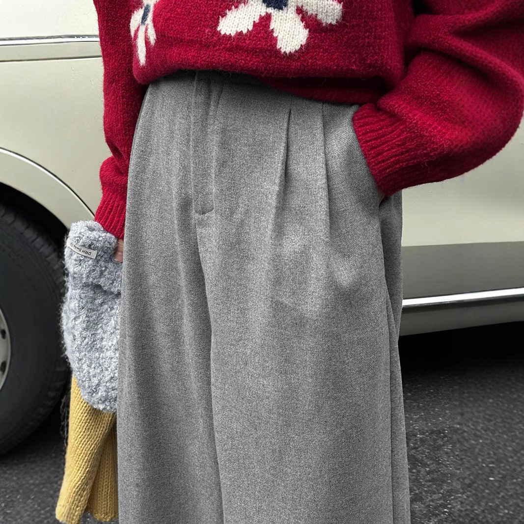 【年末特典返品不可】タオチャン レトロハイウエストウールカジュアルパンツ レディース万能ロングパンツ 2339