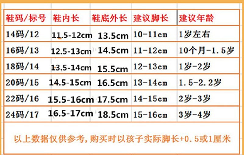 尺码 120内长11.5cm,130内长12.5cm,140内长13.5cm,150内长14.5cm,160内长15.5cm,170内长16.5cm