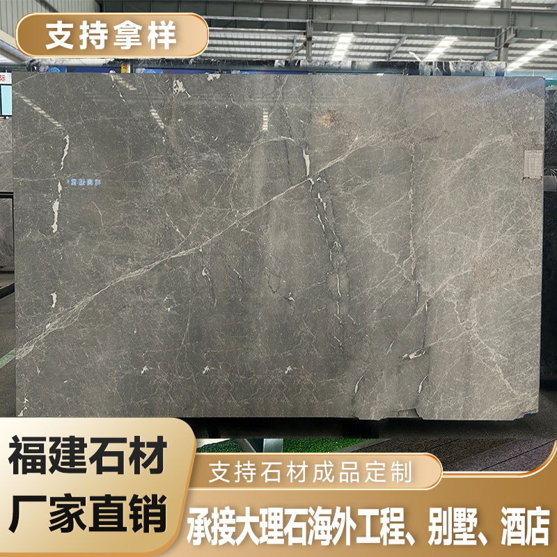 厂家批发天然大理石材灰色背景墙窗台石高级餐桌台面楼梯地板加工