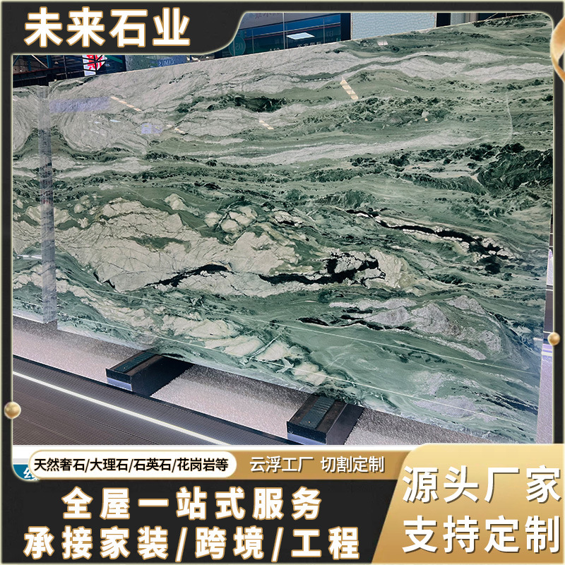 维多利亚绿 天然奢石板材 绿色大理石桌面 别墅背景墙岛台柜面板