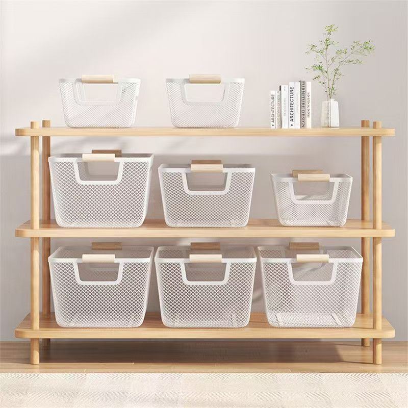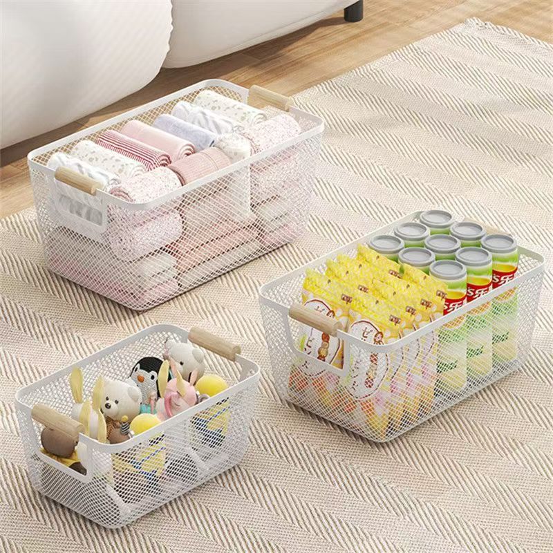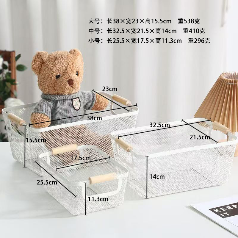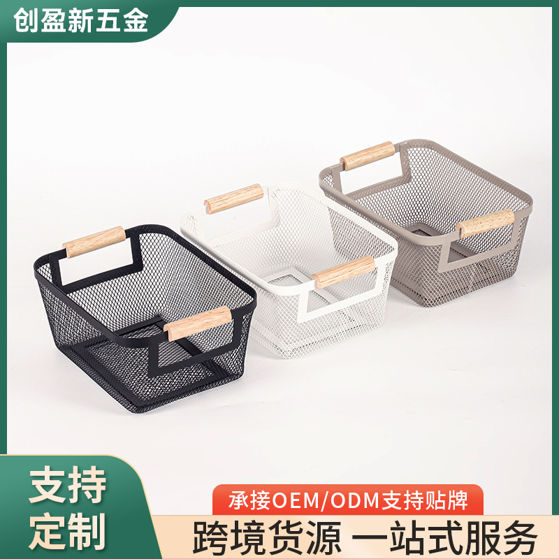 跨境可贴标家用客厅厨房杂物收纳商用陈列归类收纳铁艺镂空收纳篮