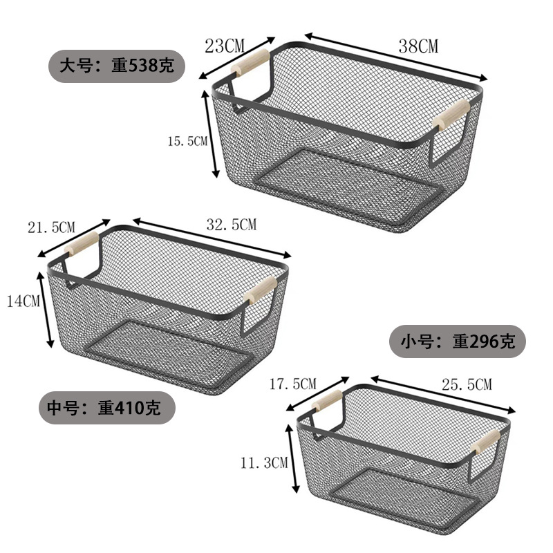 デスクトップ収納バスケット鉄フレーム大サイズキッチン家庭用野菜果物収納バスケット長方形雑物整理聖之聖