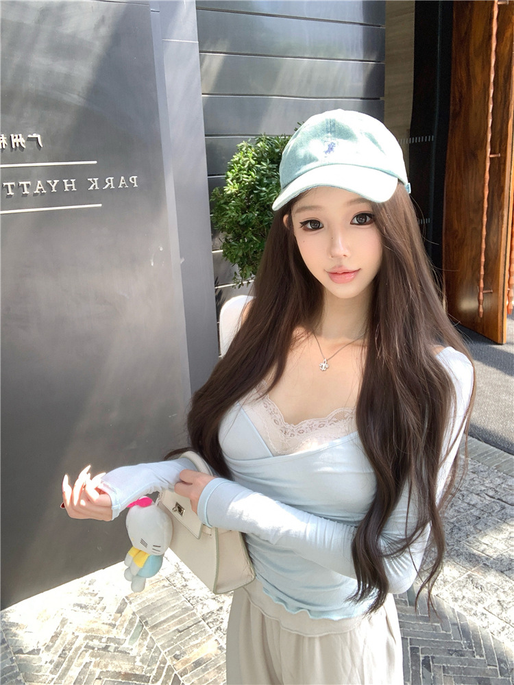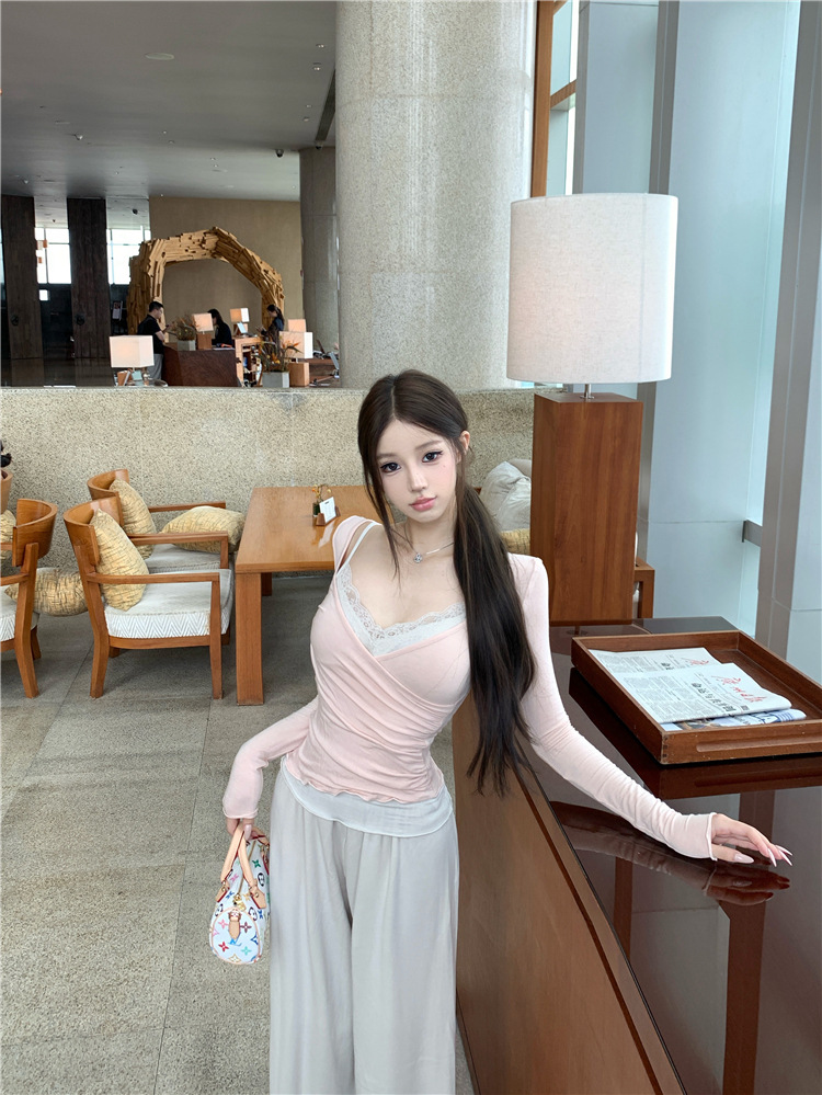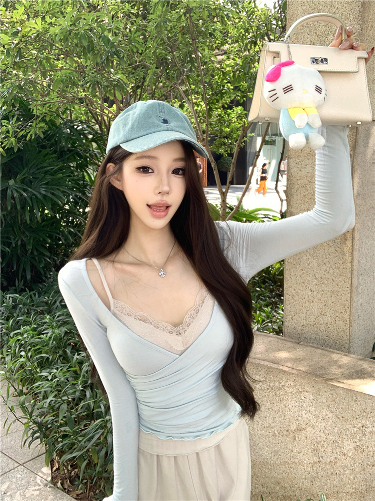 【纯欲担当】真两件蕾丝褶皱背心长袖上衣两件套