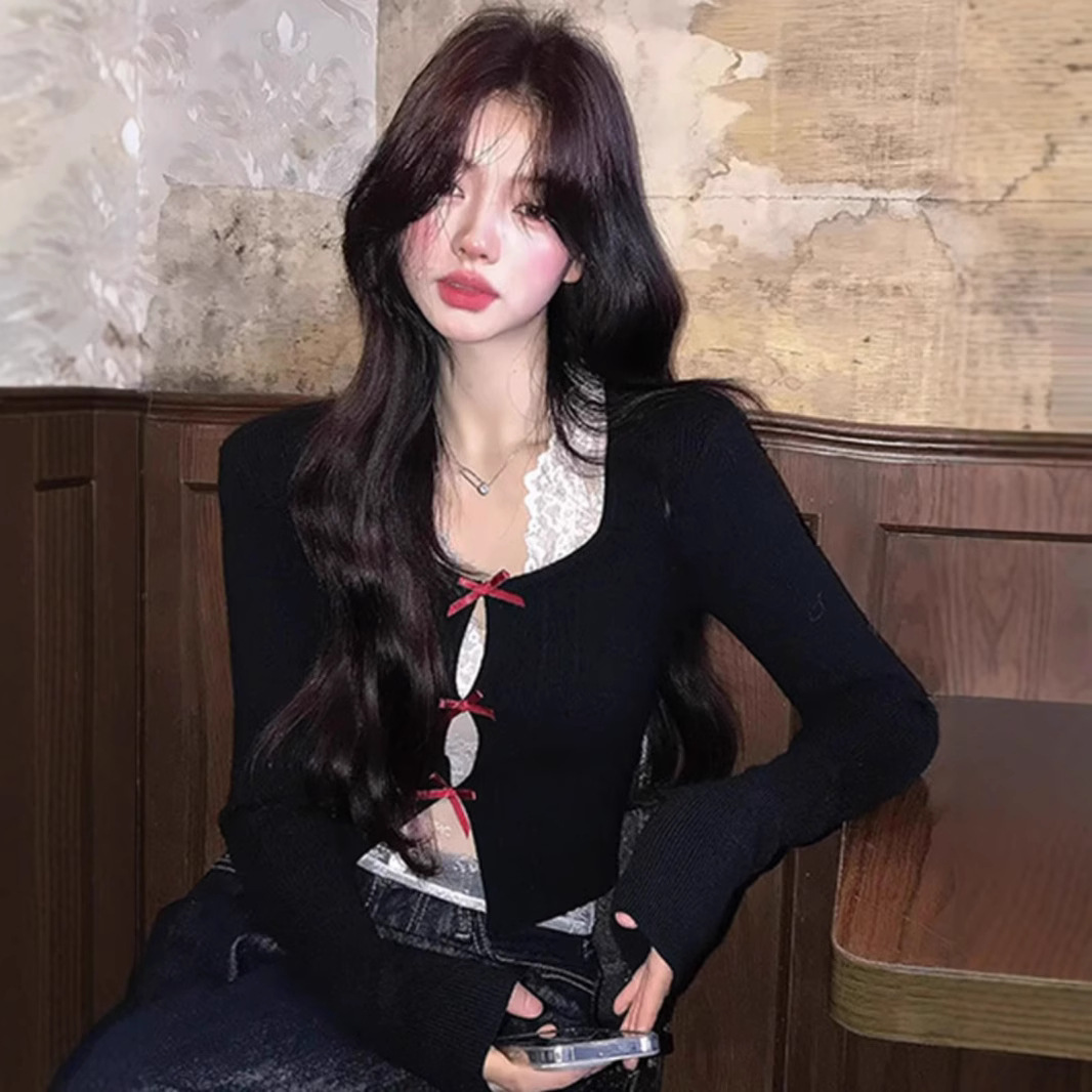 MR【オリジナルの作り方】韓国系甘辛純欲メリヤスカーディガン女性の早秋レース内デザイン感長袖