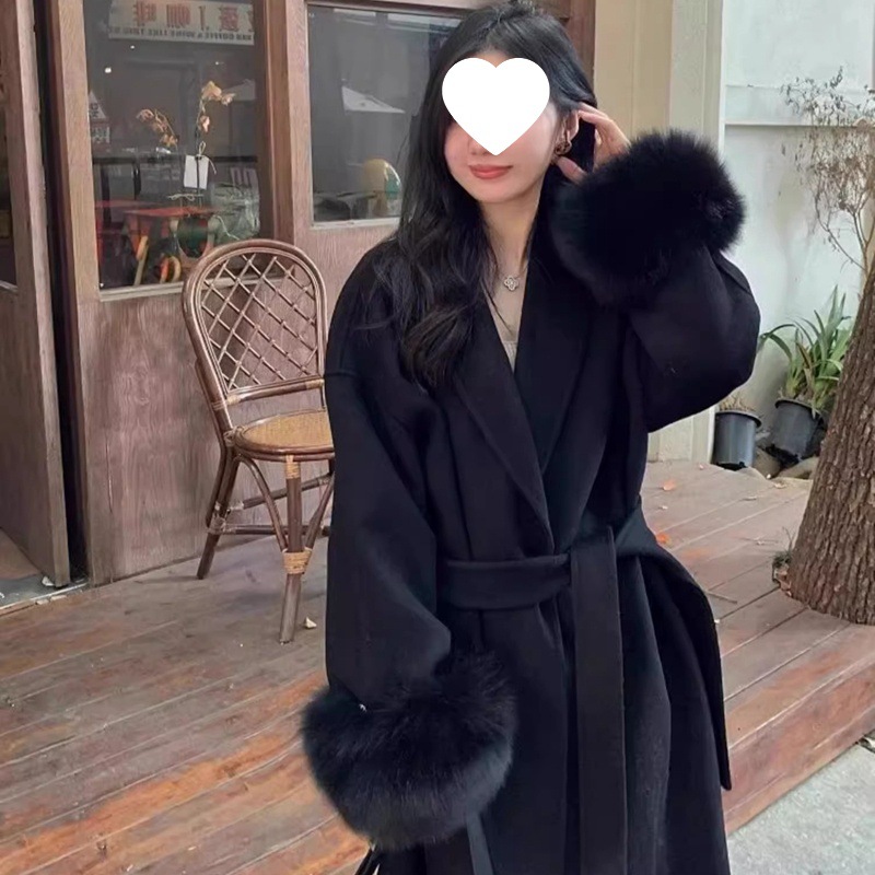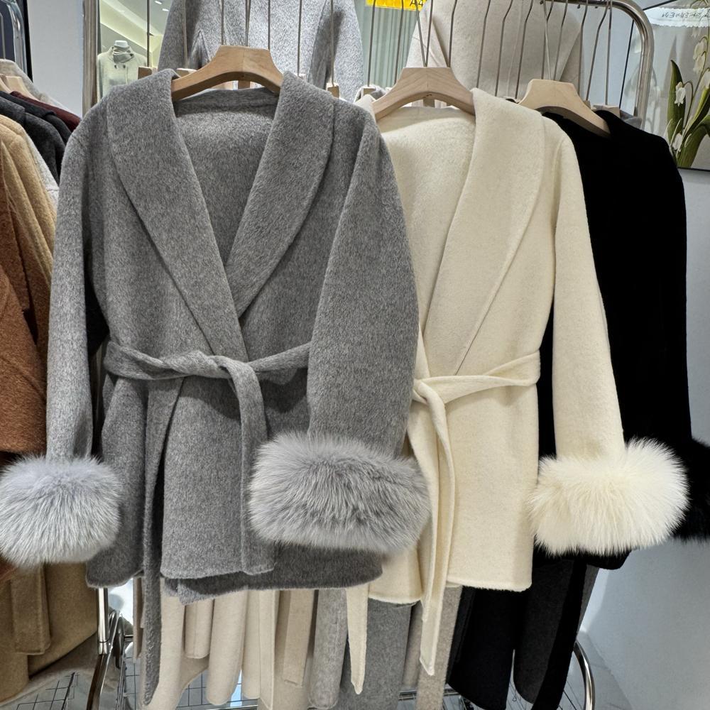 反季新款双面羊毛大衣女短款优雅小个子可拆狐狸毛气质羊毛呢外套