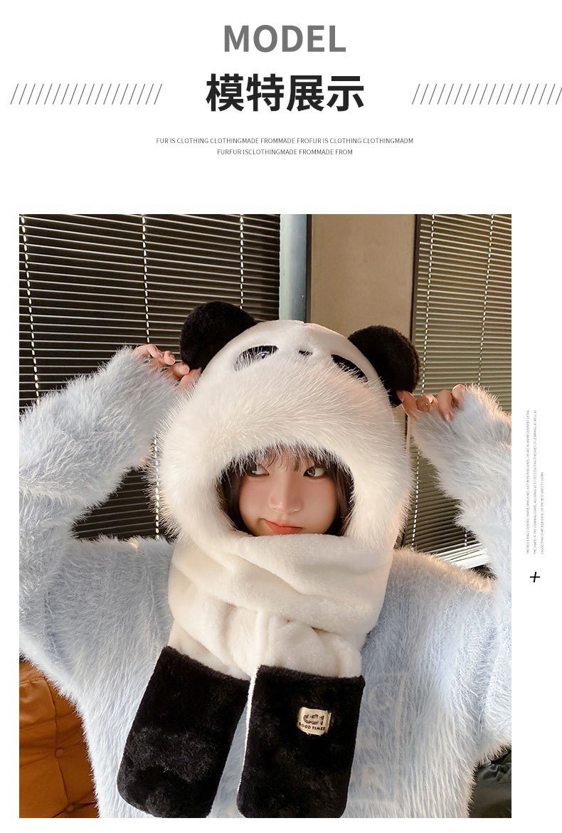 毛绒小熊帽子围巾一体加厚围脖可爱冬季百搭骑车保暖加绒护耳连帽