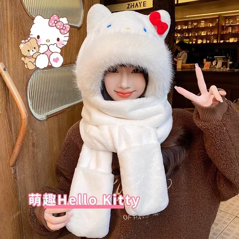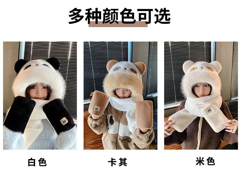 2025新款超可爱卡通猫咪帽子三件套女冬季毛绒保暖加绒加厚骑车
