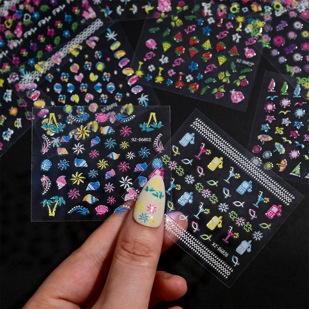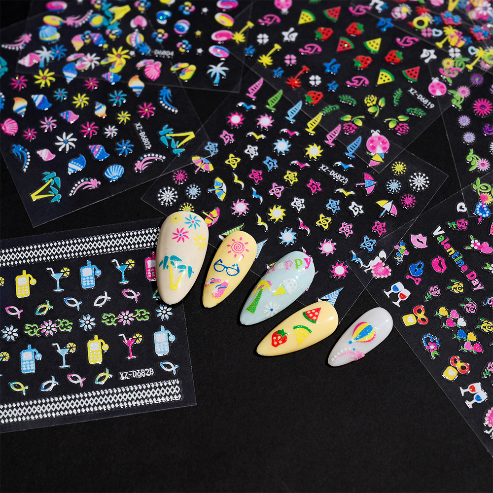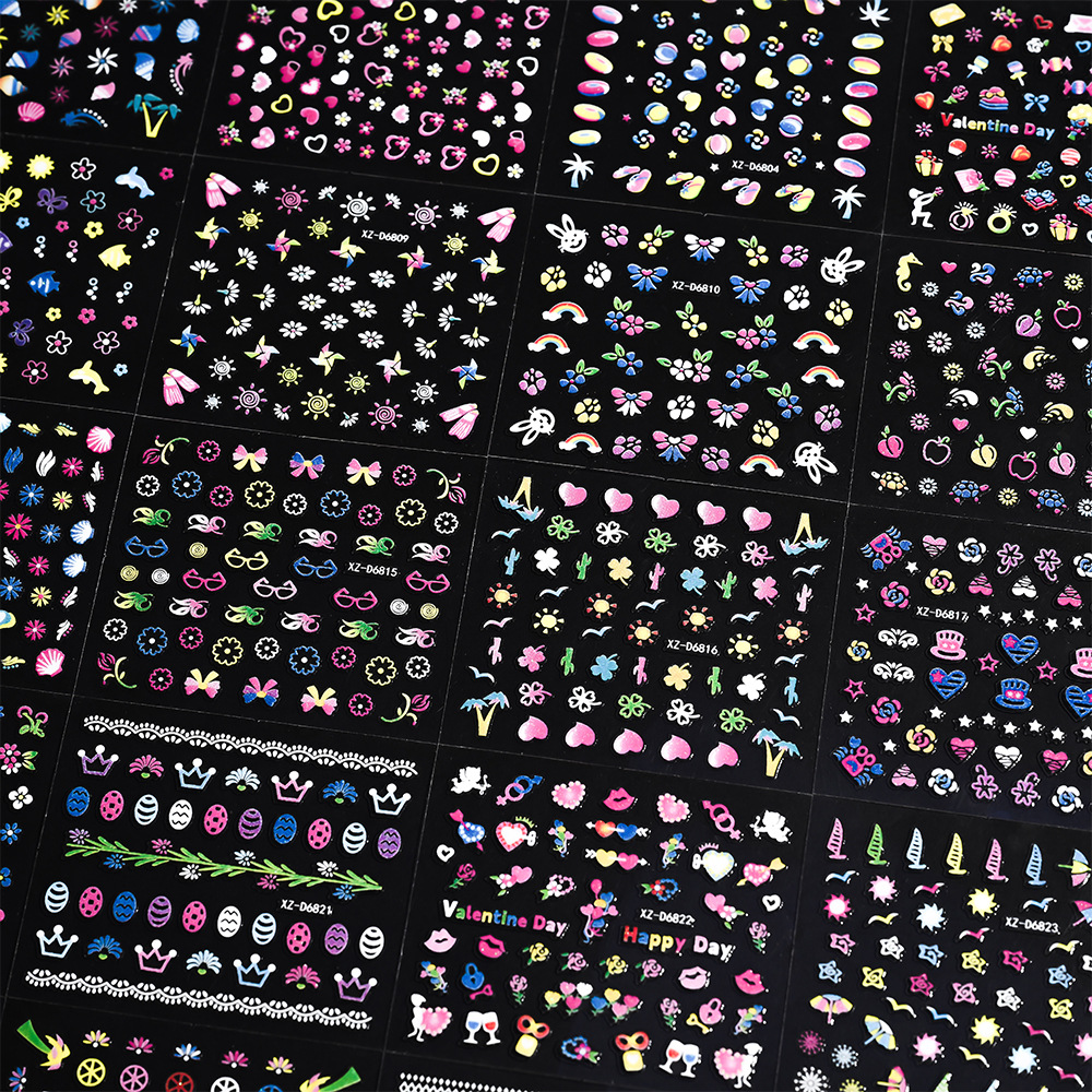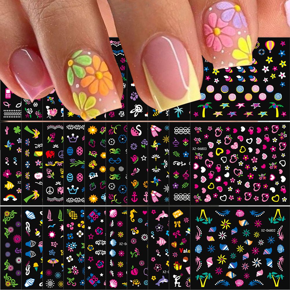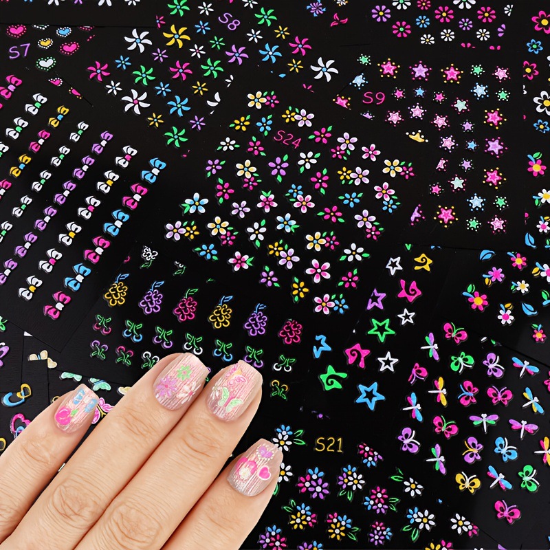 2025年跨境新款夜光彩花美甲贴纸可爱日系迷你爆款指甲装饰贴
