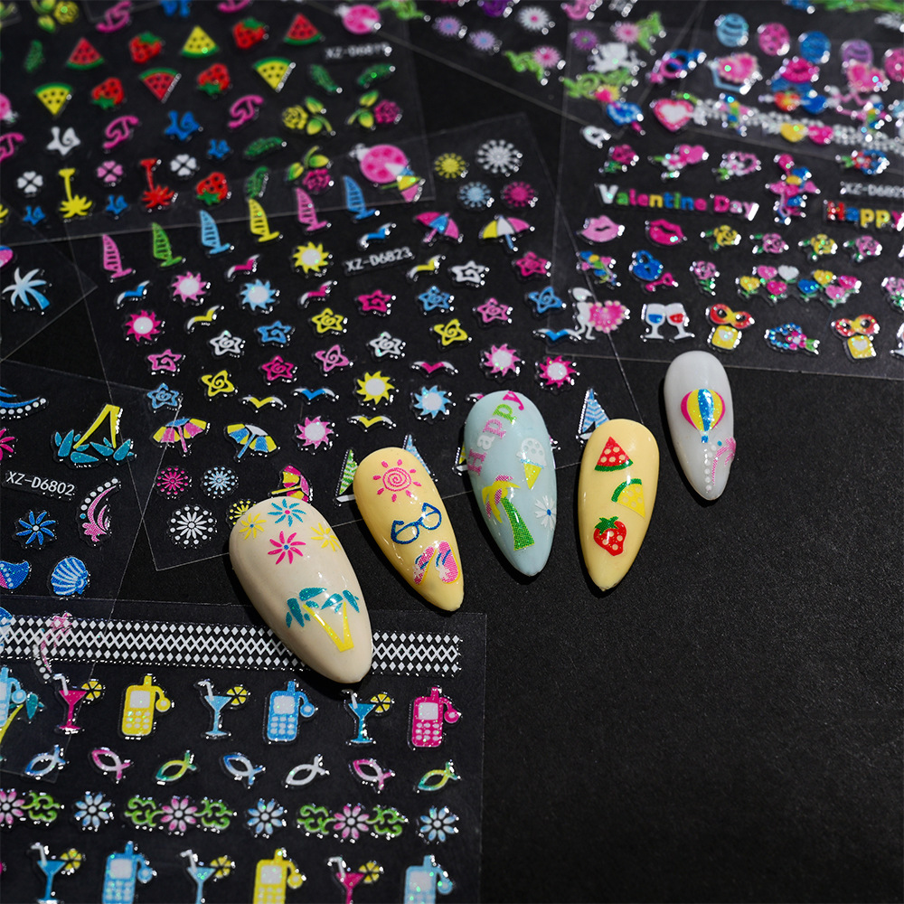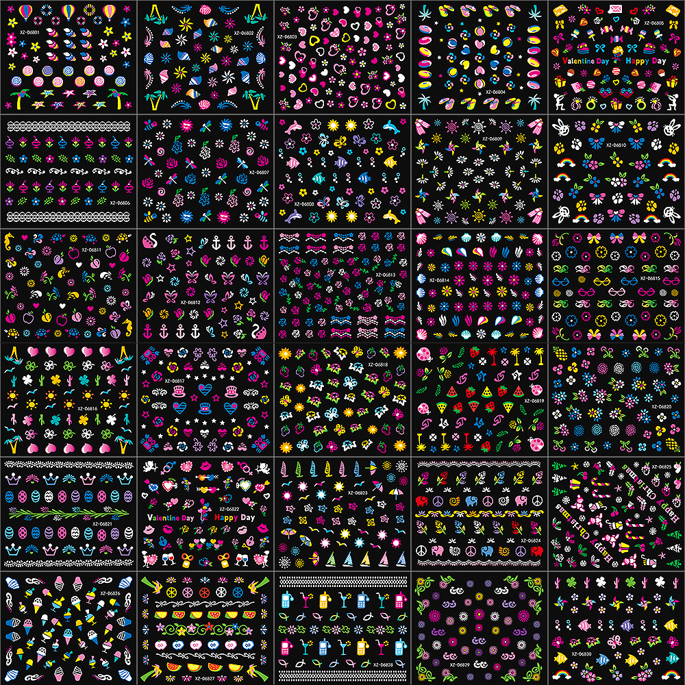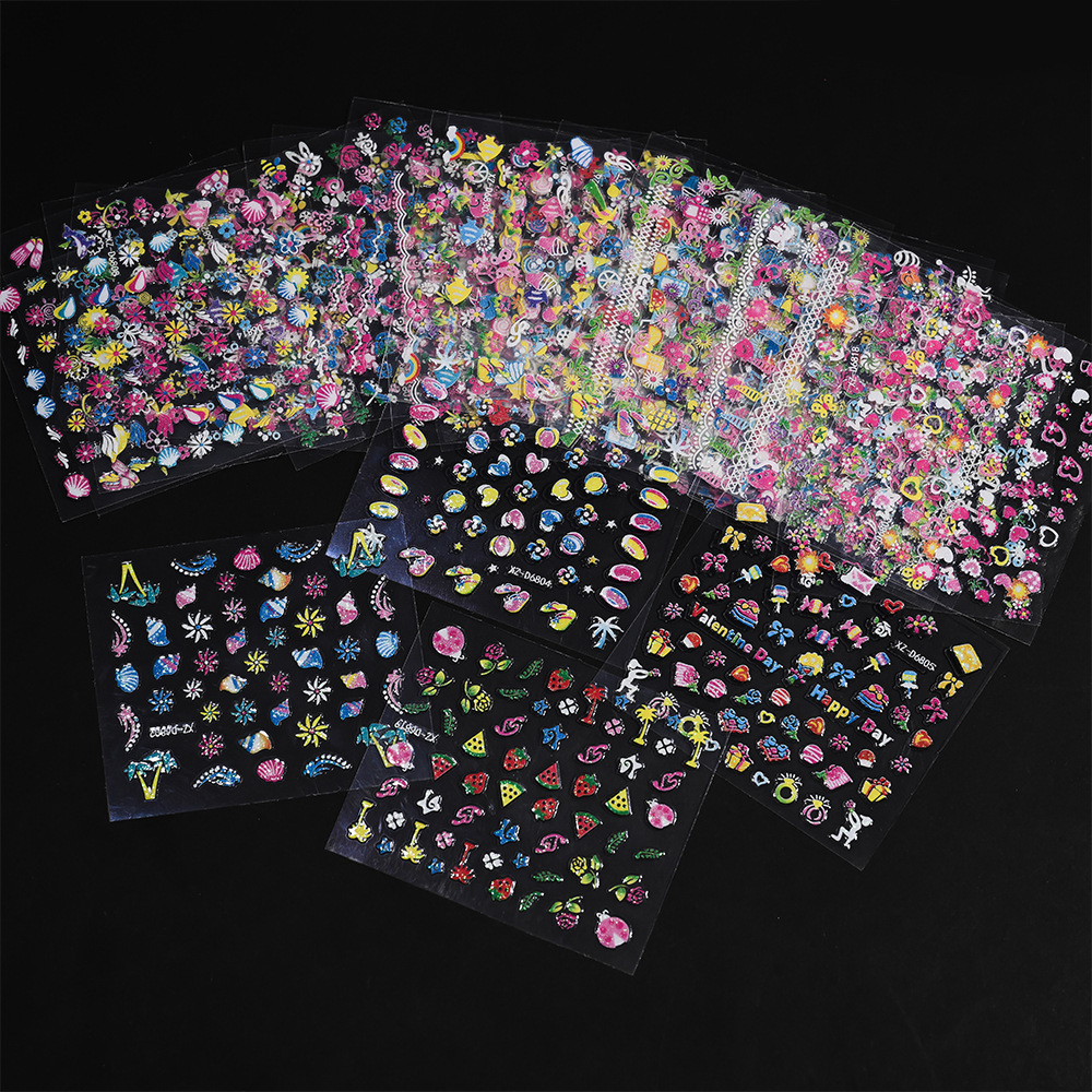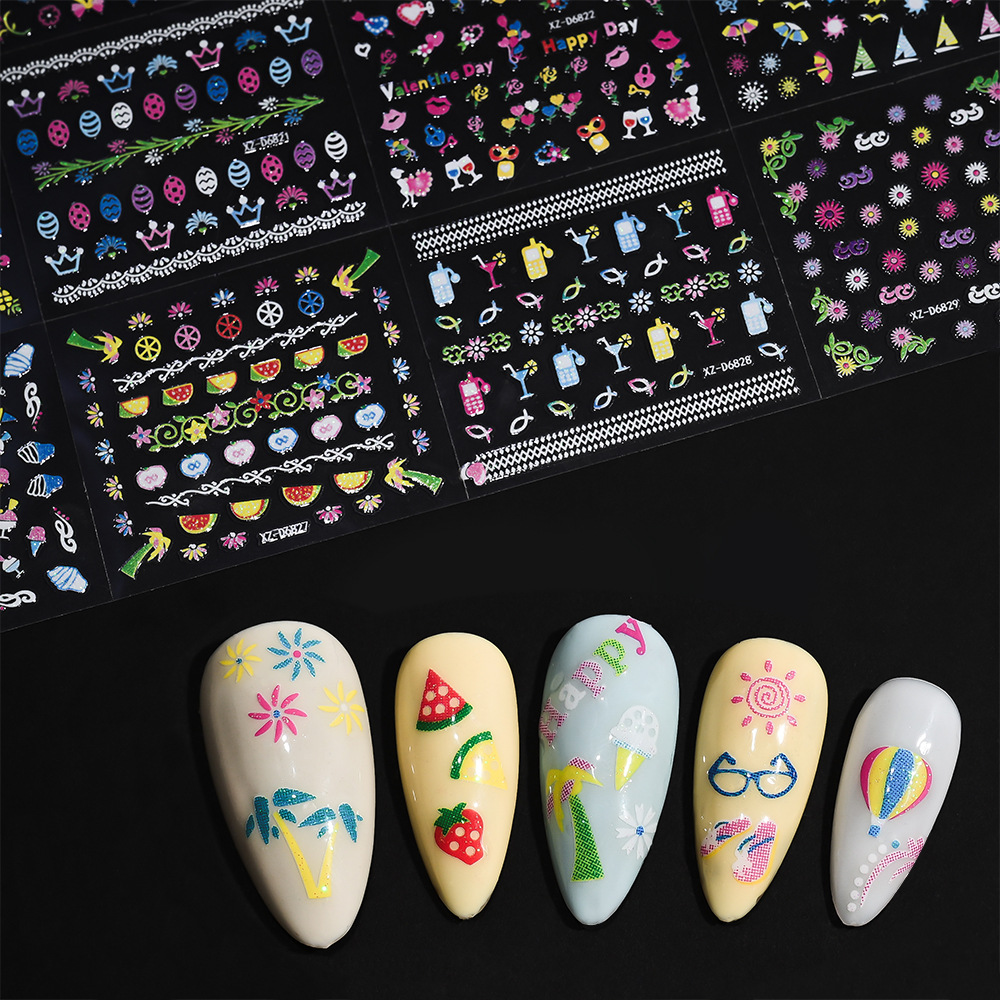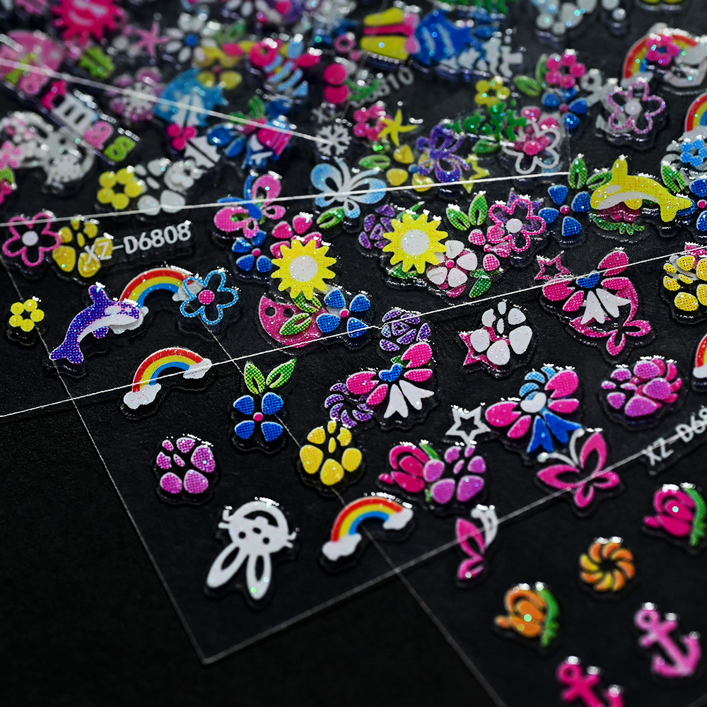 2025年跨境新款夜光彩花美甲贴纸可爱日系迷你爆款指甲装饰贴
