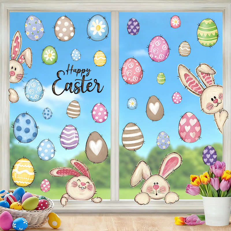 复活节窗贴pvc墙贴兔子动物节日儿童房玻璃窗贴花卡通彩蛋贴纸