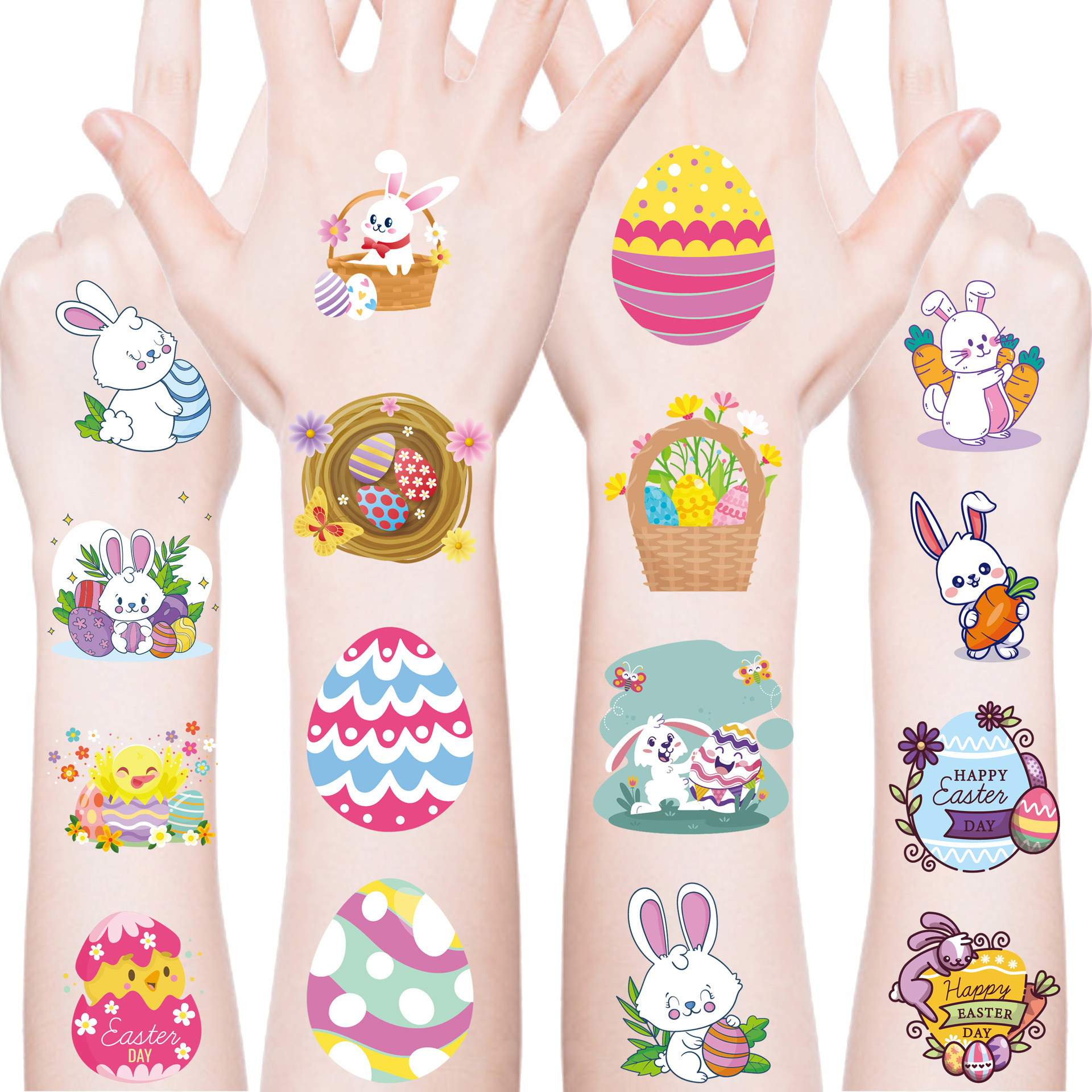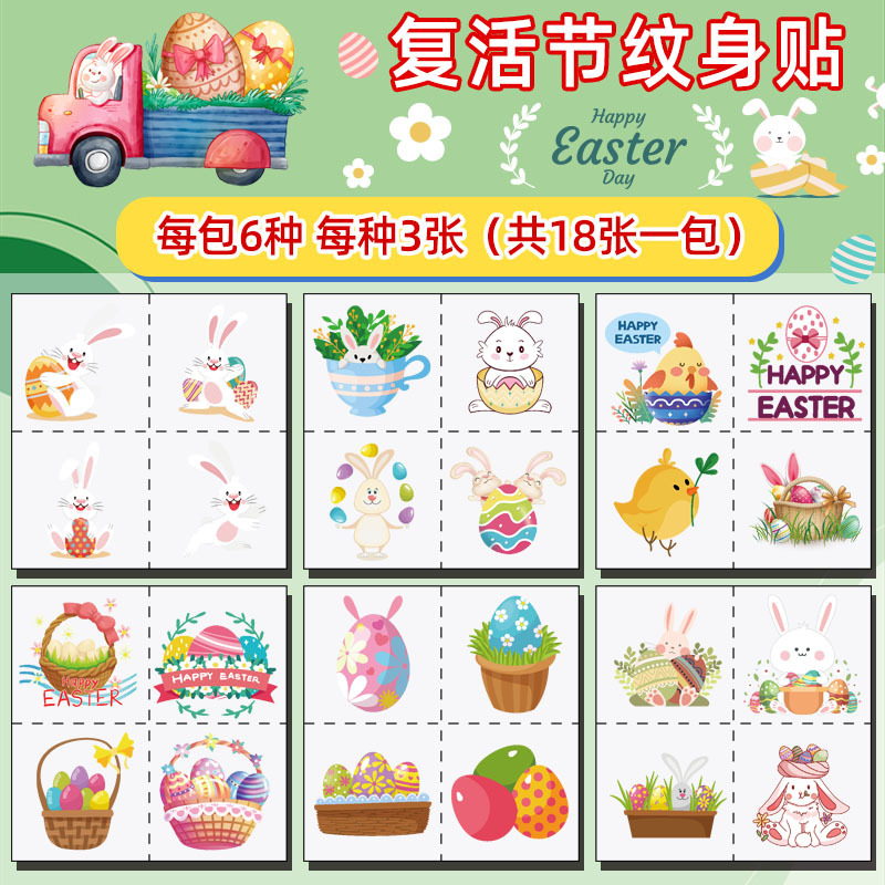 跨境新品复活节彩蛋纹身贴卡通可爱兔子礼物儿童节日临时纹身贴纸