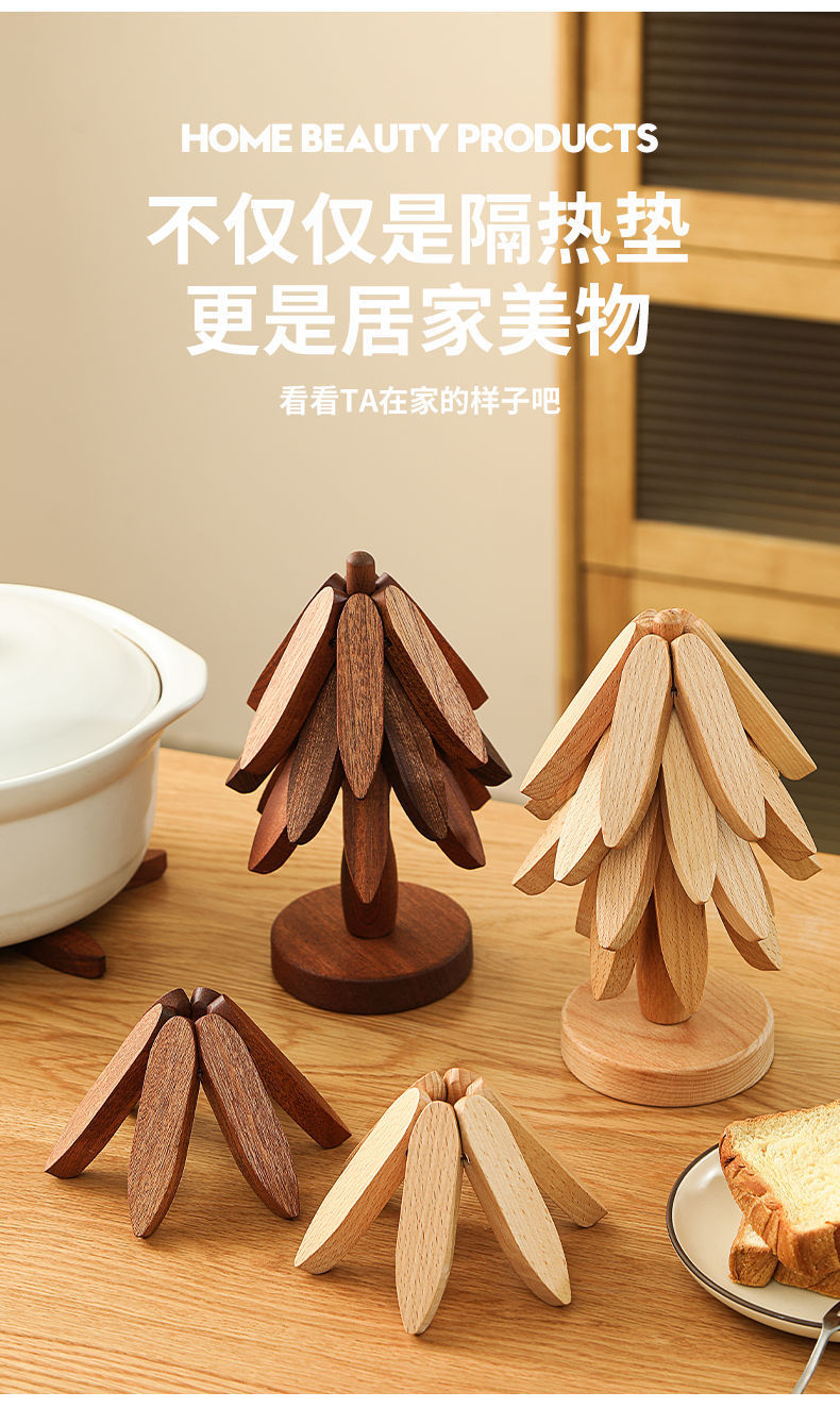 圣诞树隔热垫餐桌摆件创意一棵树实木防烫锅垫折叠杯垫碗垫高级感