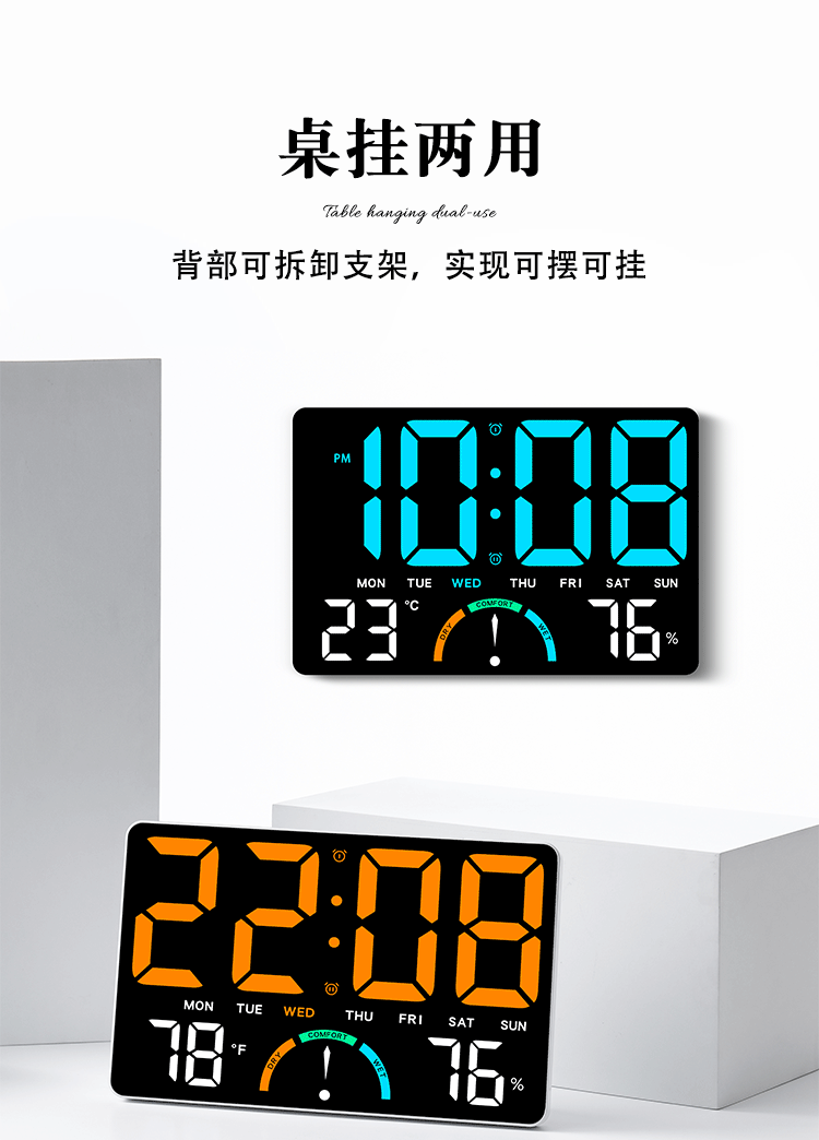 大屏LED时钟客厅挂钟多功能数字钟表可立可挂墙钟GH9008