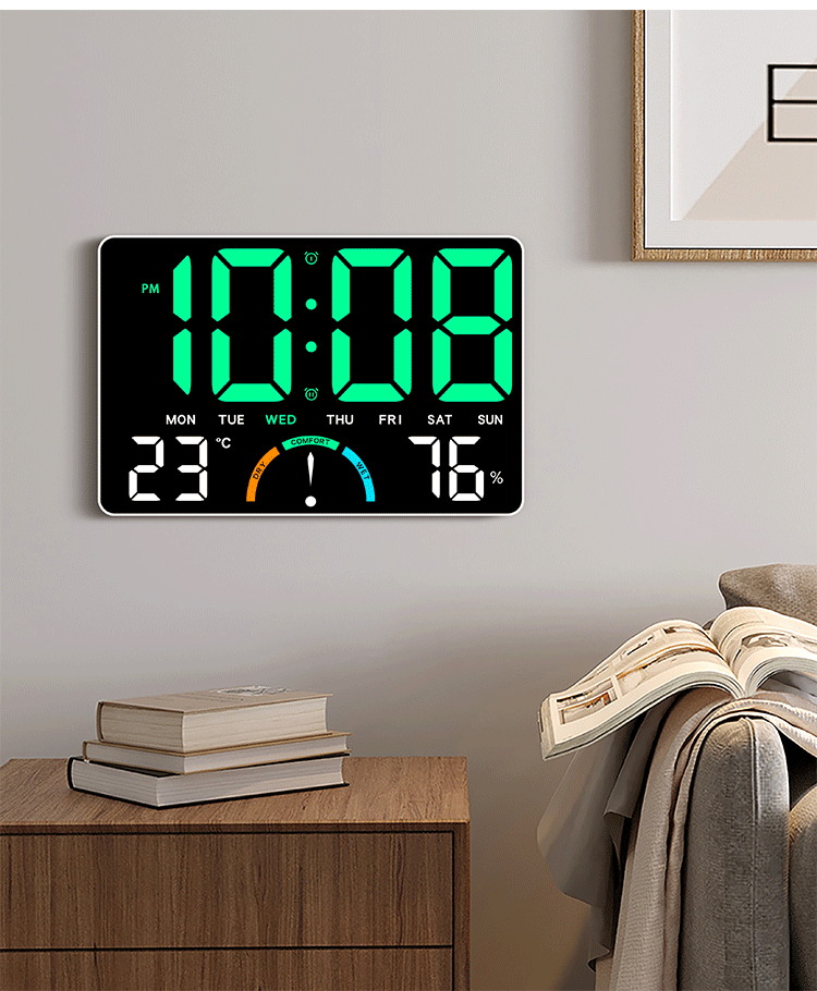 新しいリビングルームの掛け時計ナイトライト付き電子時計多機能家庭用時計温度湿度静音時計6672