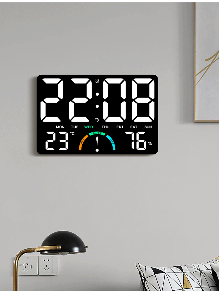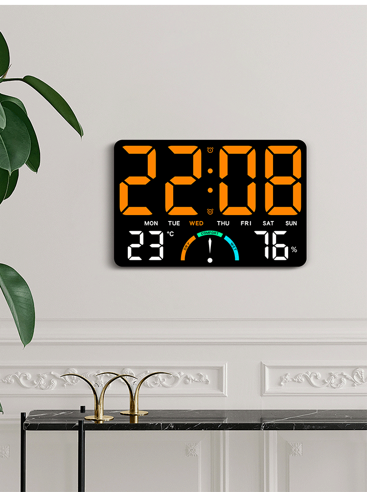 16インチ大画面機能表示時計北欧デジタル時計シンプルリビング掛け時計led壁掛け時計6626