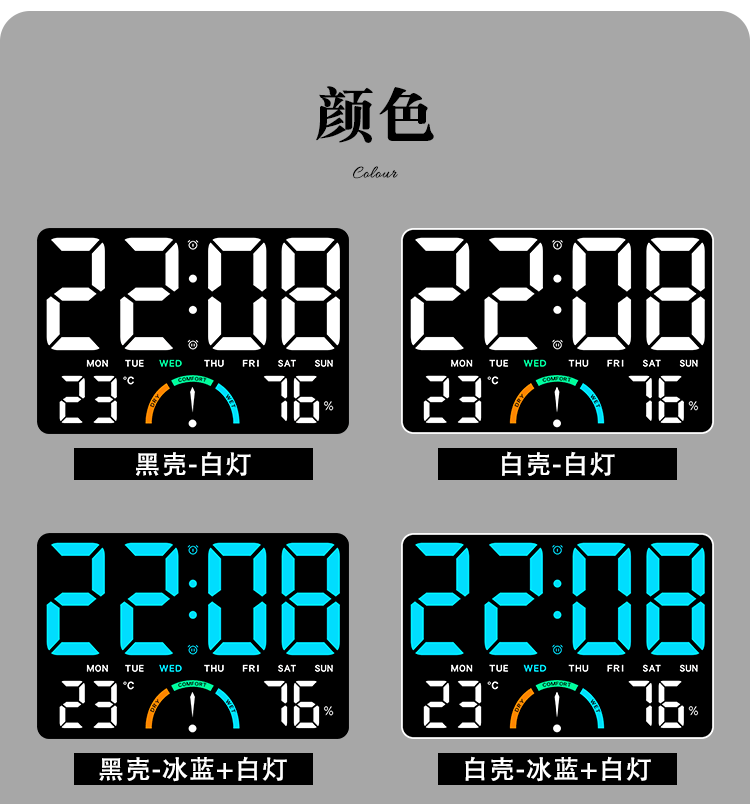 カラークリエイティブ多機能電子時計シンプルな大画面時計目覚まし時計学生時計複数の鏡面0712
