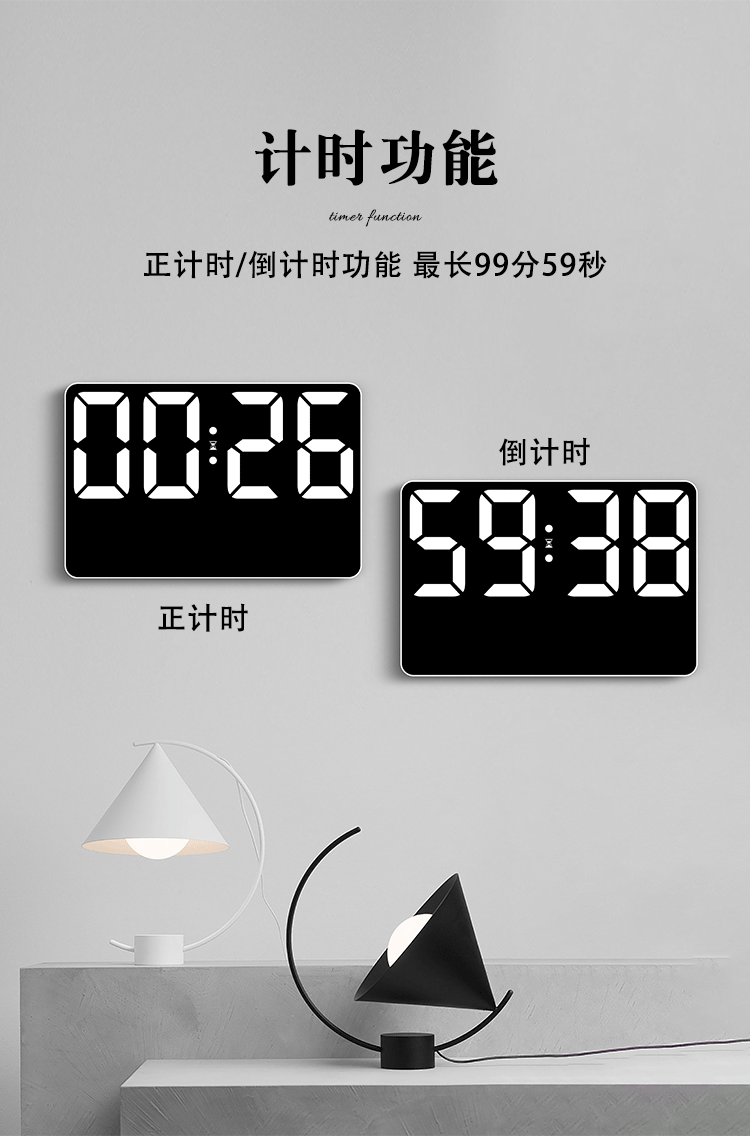 新品夜光创意时钟客厅挂钟简约现代LED数字钟表两组闹钟6688