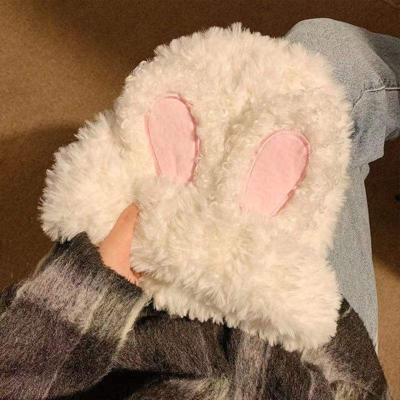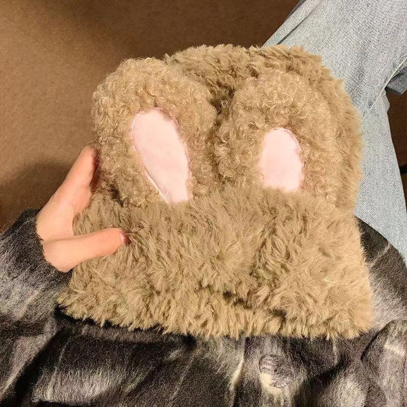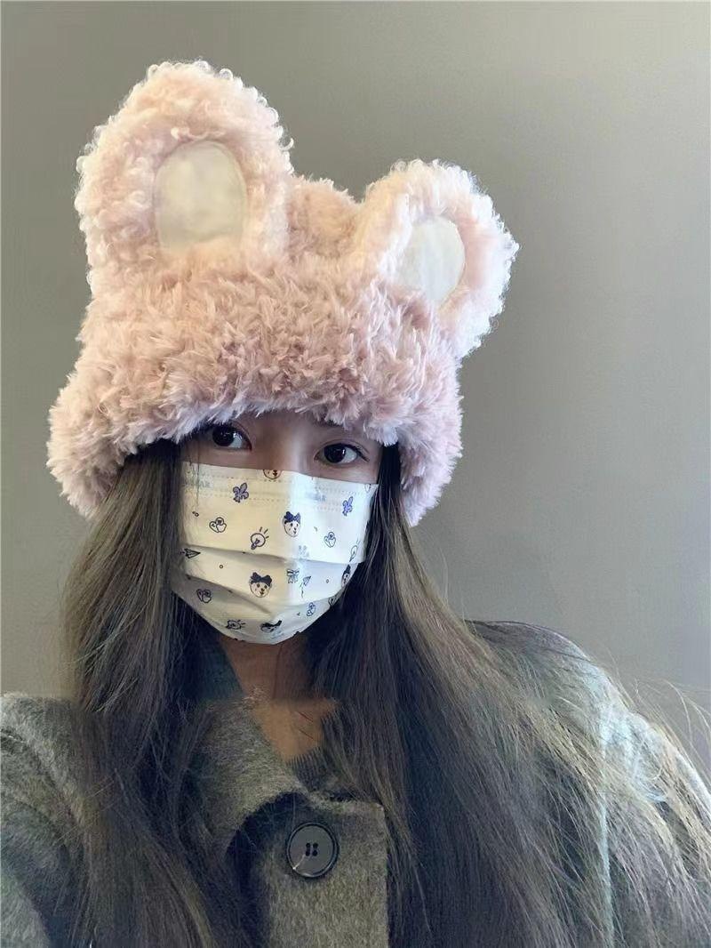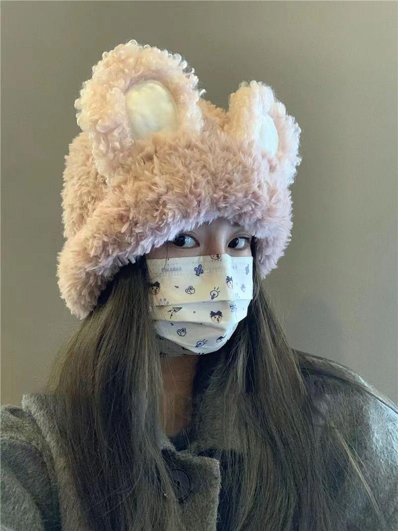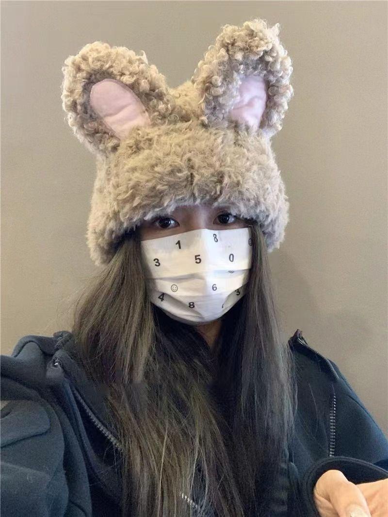 韩国可爱毛绒兔耳朵帽子女秋冬保暖针织帽护耳显脸小冷帽包头帽潮