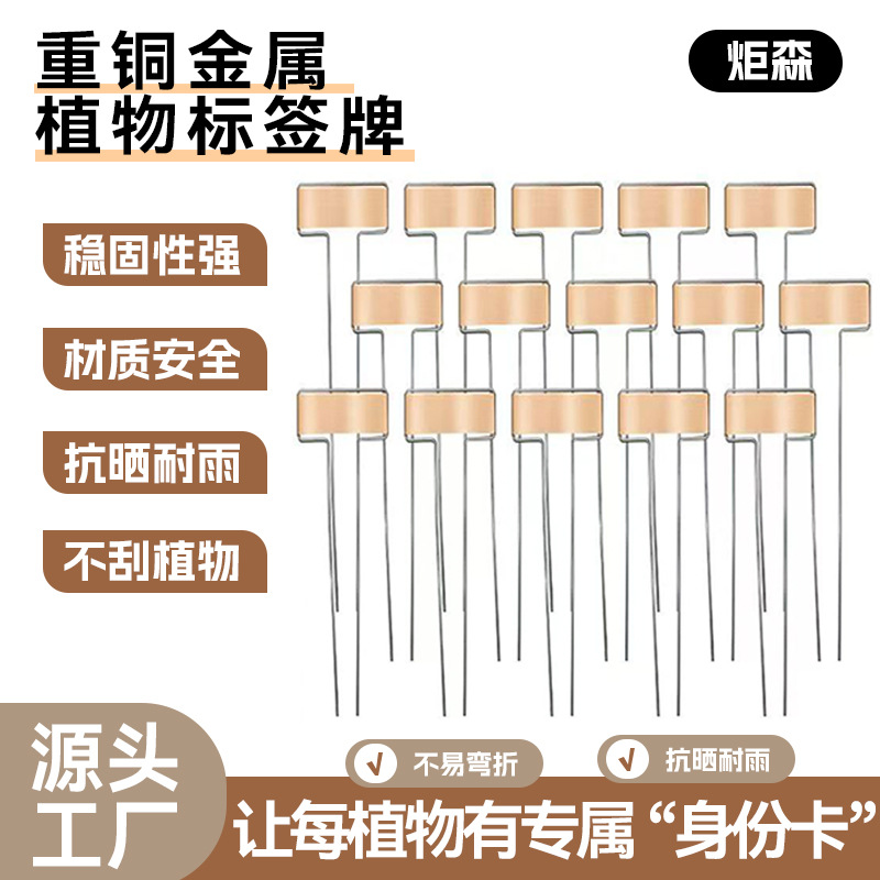 跨境紫铜金属植物标签牌园艺标签插T型标签牌盆栽牌花卉园林插牌