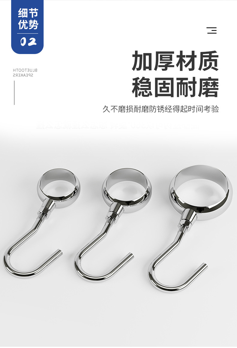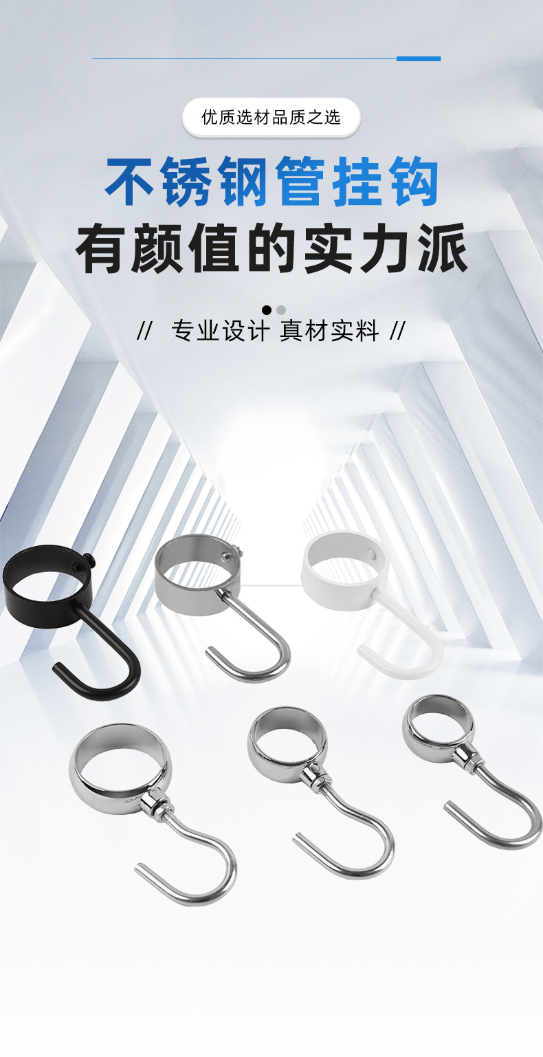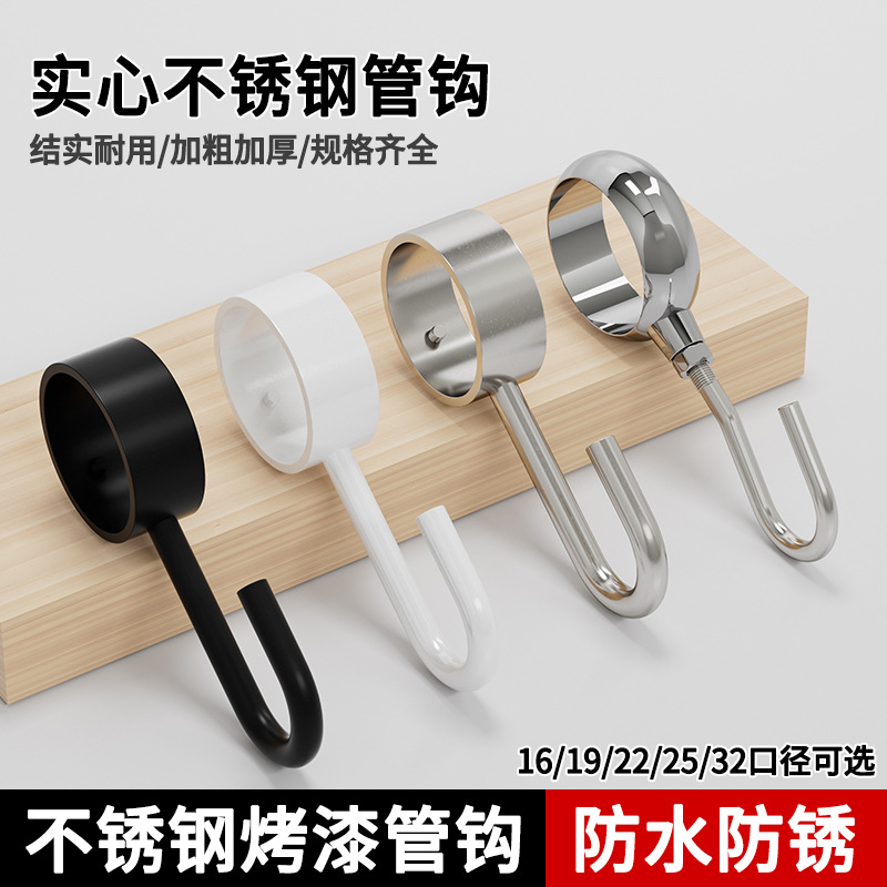 加厚不锈钢管钩圆管吊钩晾衣杆防风钩免打孔套管钩活动钩厨房挂钩