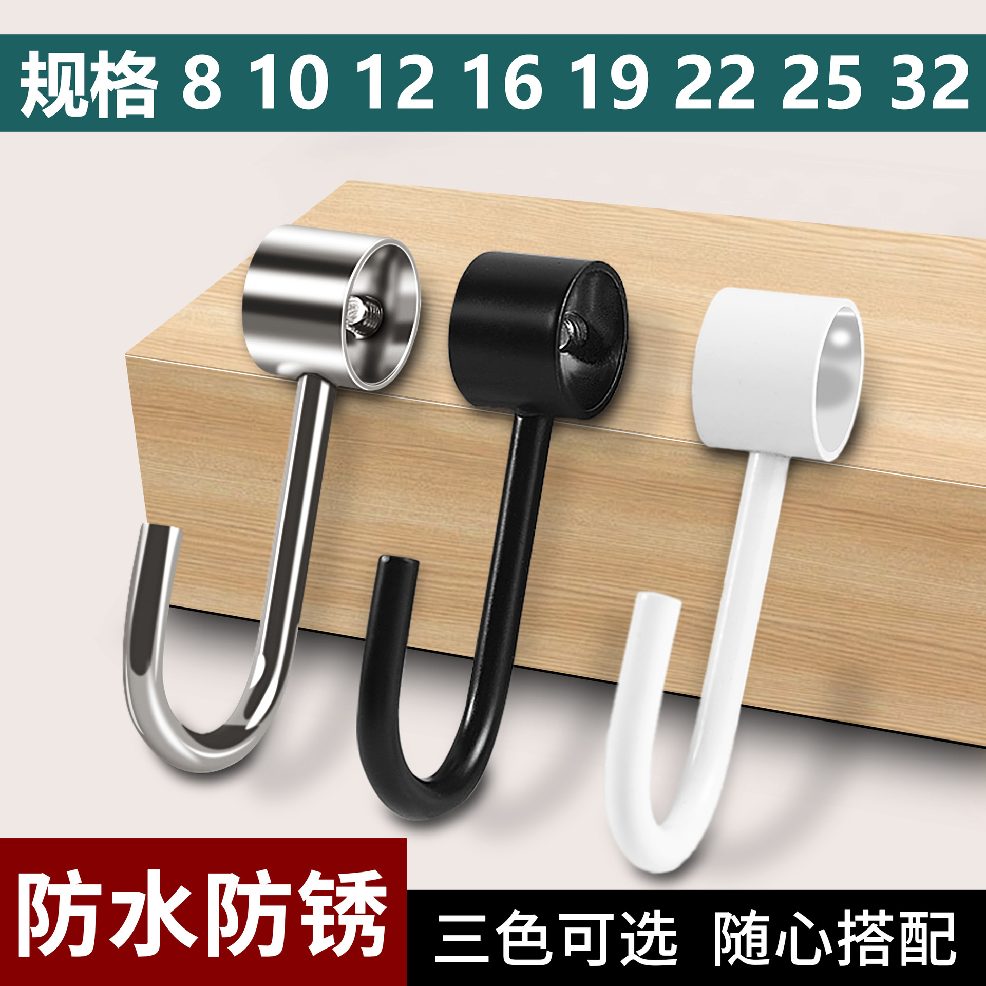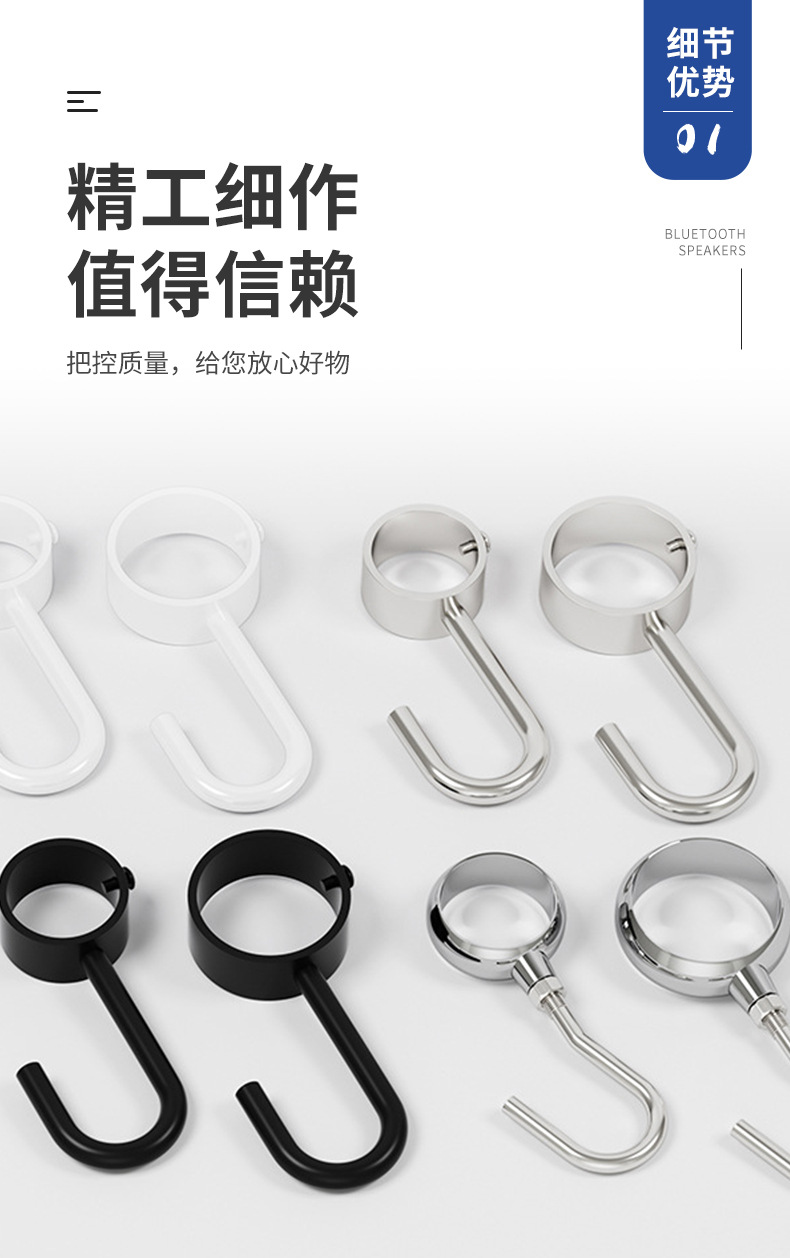 不锈钢穿管钩晾衣杆防风钩套合金管钩活动钩厨房圆管吊钩挂钩S钩
