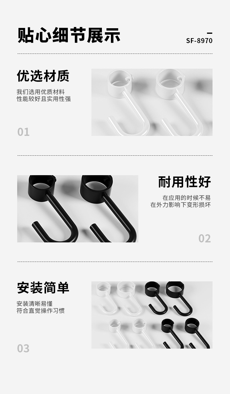 不锈钢穿管钩晾衣杆钩套合金管钩活动钩厨房圆管吊钩挂钩S钩收纳