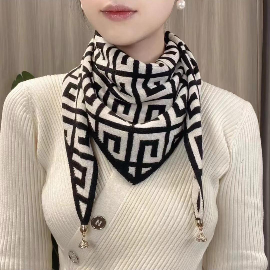 2024新型保温スカーフ磁気吸引ボタン三角スカーフ綿マフラー