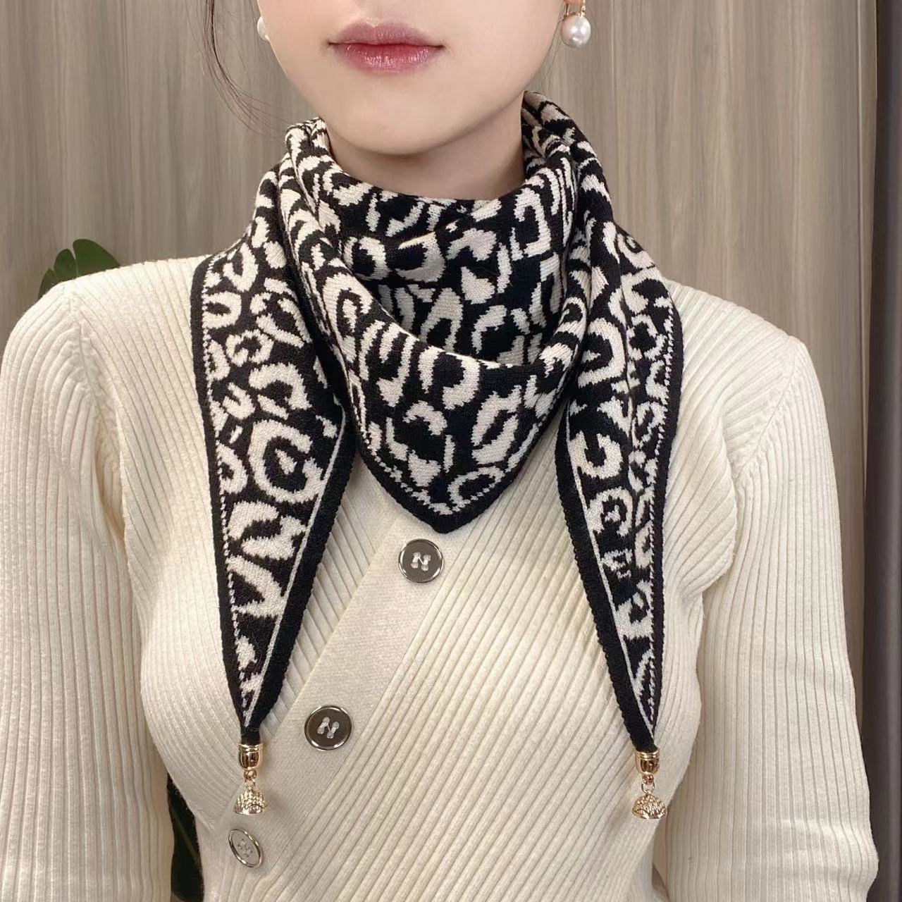 针织磁扣三角巾多功能双色百搭针织保暖护颈洋气小一朵朵同款围巾
